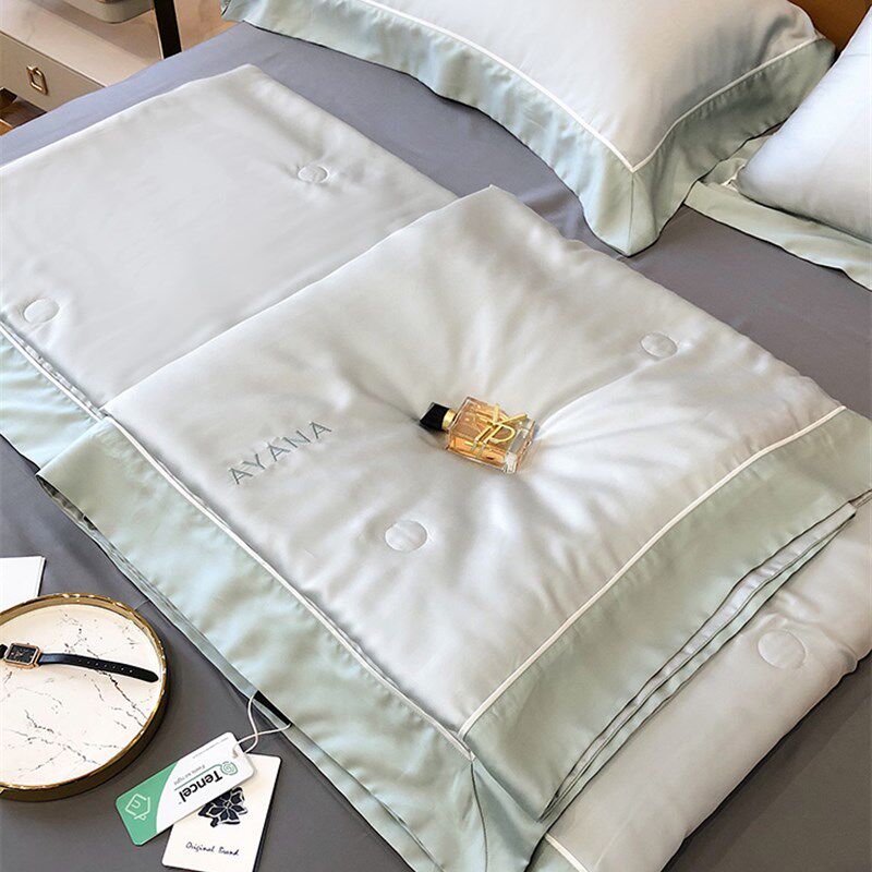 夏季简约风纯色兰精天丝四件套夏被冰丝80支裸睡空调被透气被子薄