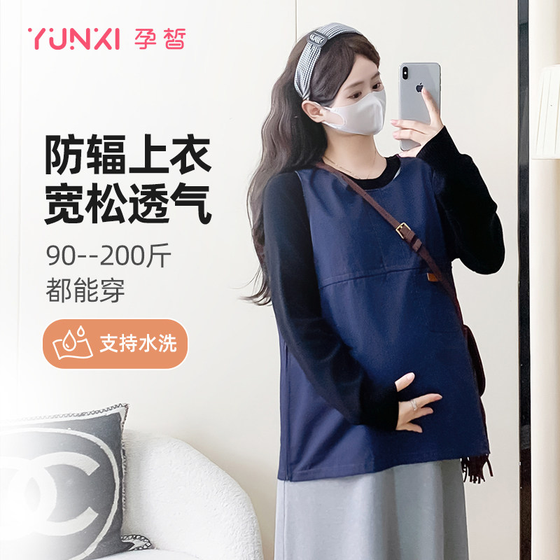 孕皙防辐射孕妇服背心马甲大码侧拉链辐射服孕期上班族电脑工作服