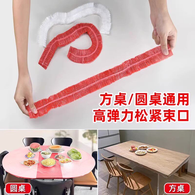 推荐理由:餐桌桌布一次性束口松紧带圆桌长方形桌罩塑料布台布桌套红色防油