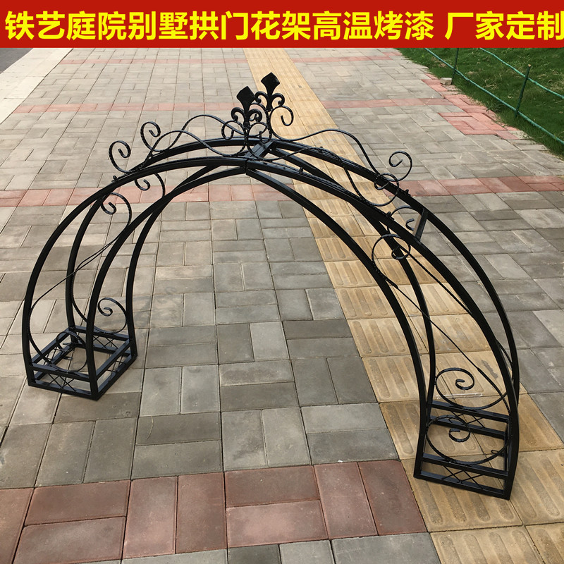 欧式铁艺拱门花架别墅鲜花拱门庭院花园门柱架子户外拱形门头订制