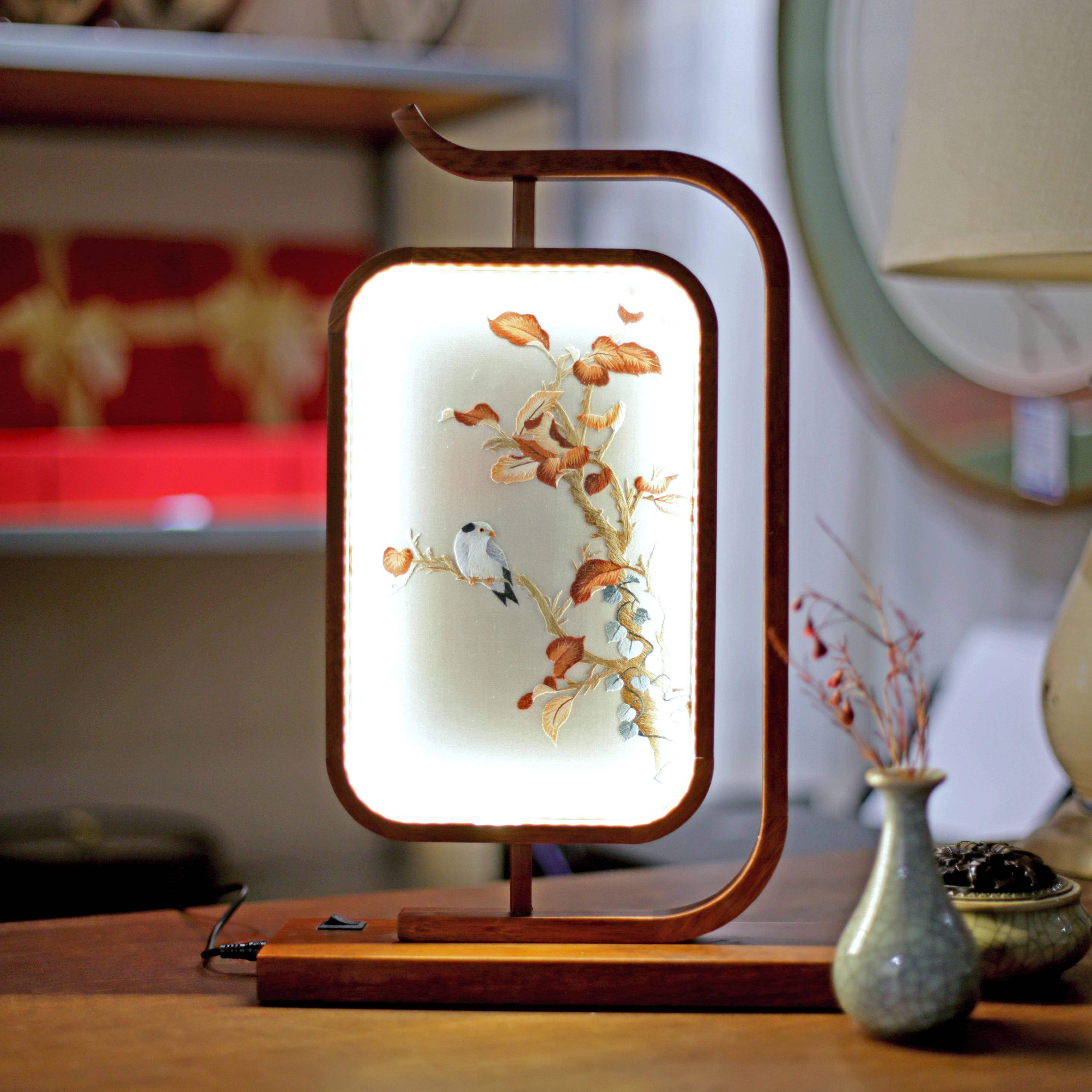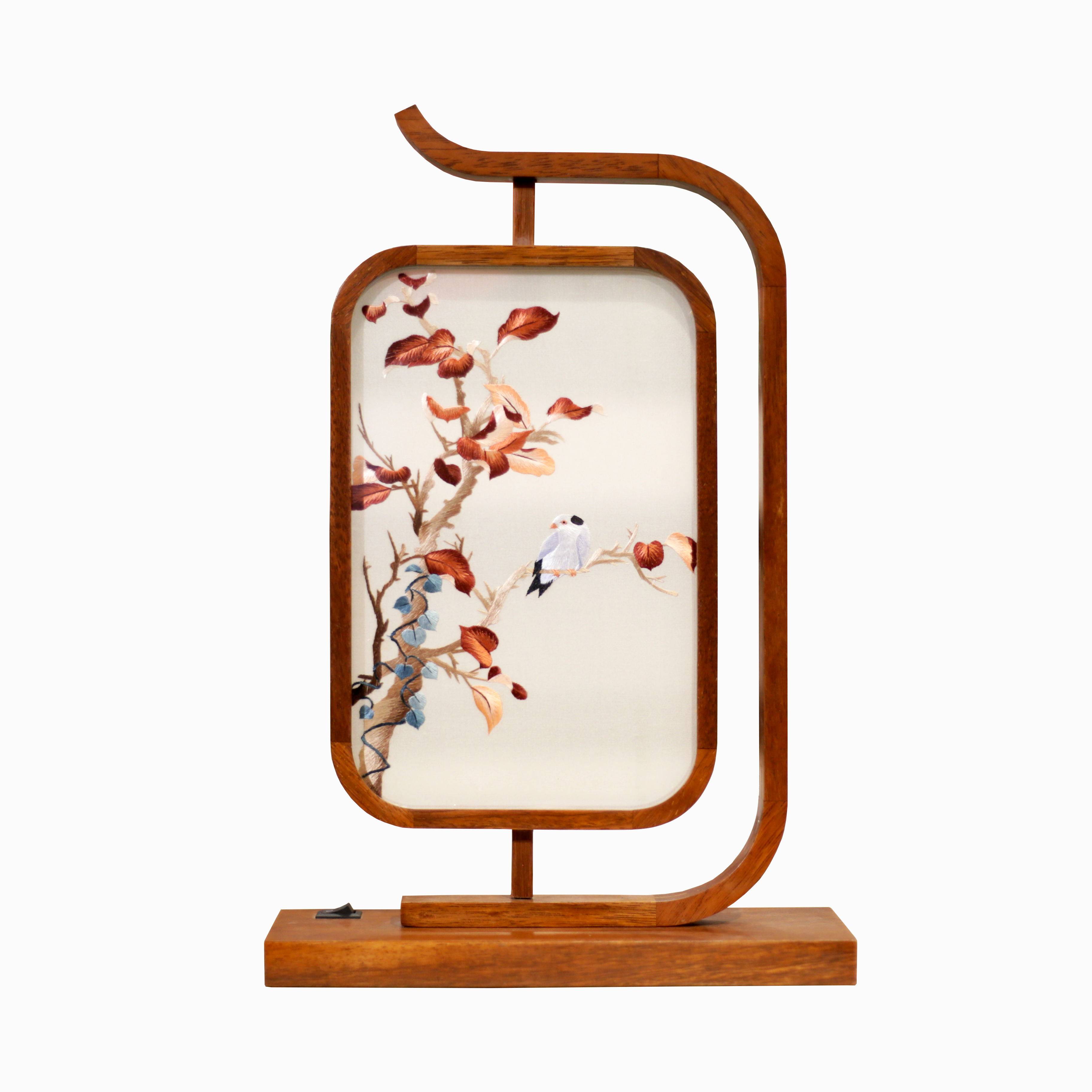 湘绣摆件双面绣手工刺绣创意特色家居礼物蜀苏绣礼品LED花梨木灯