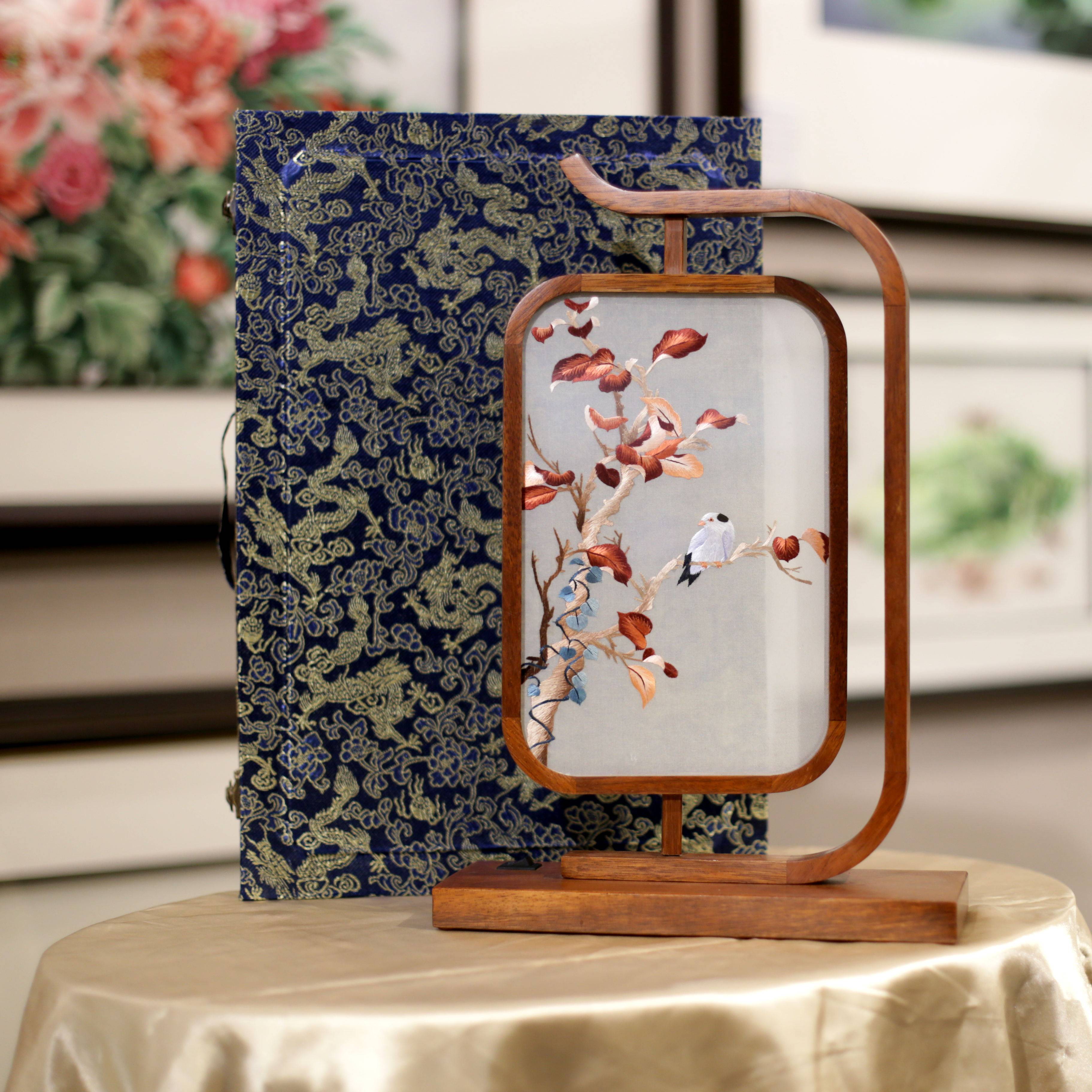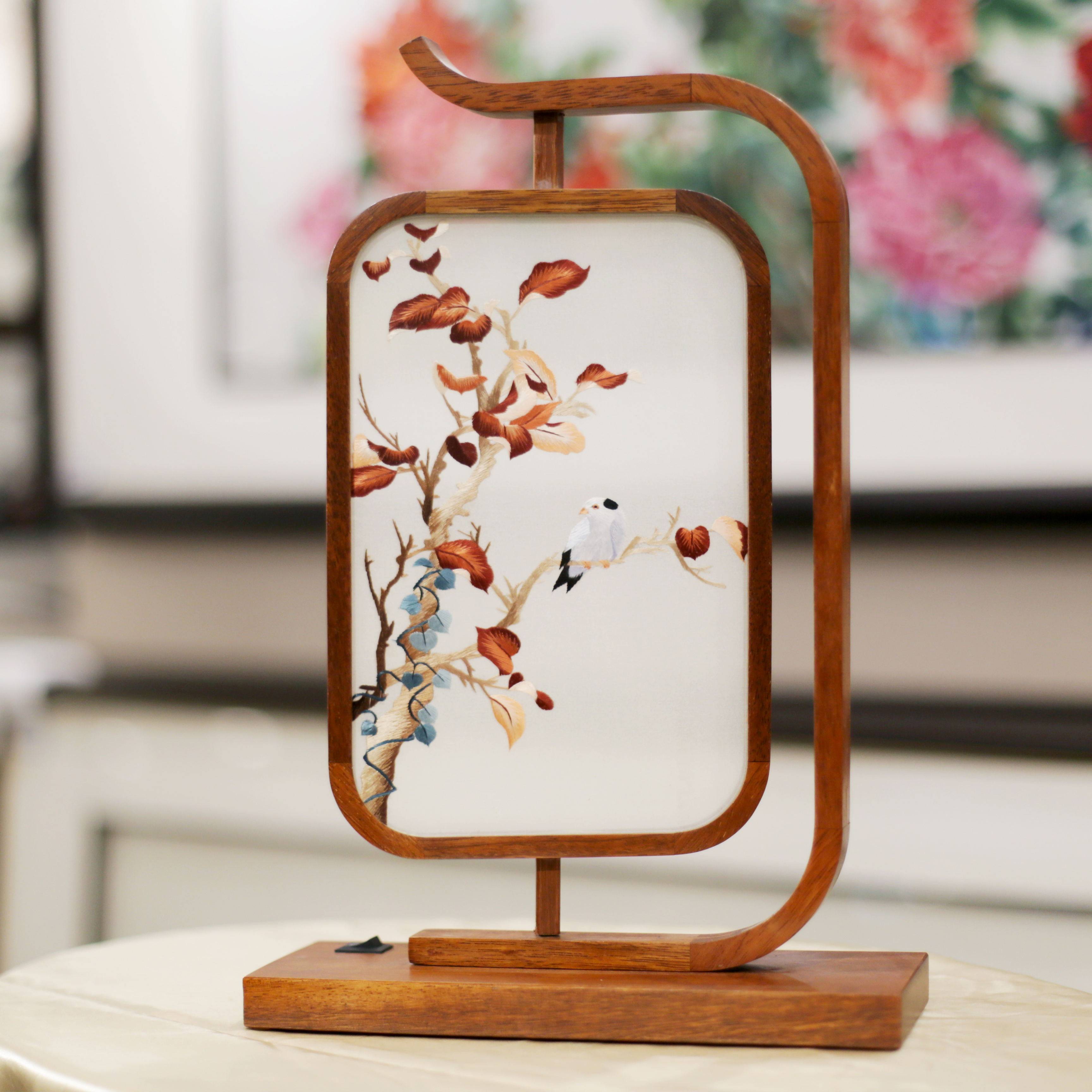 推荐理由:湘绣摆件双面绣手工刺绣创意特色家居礼物蜀苏绣礼品LED花梨木灯