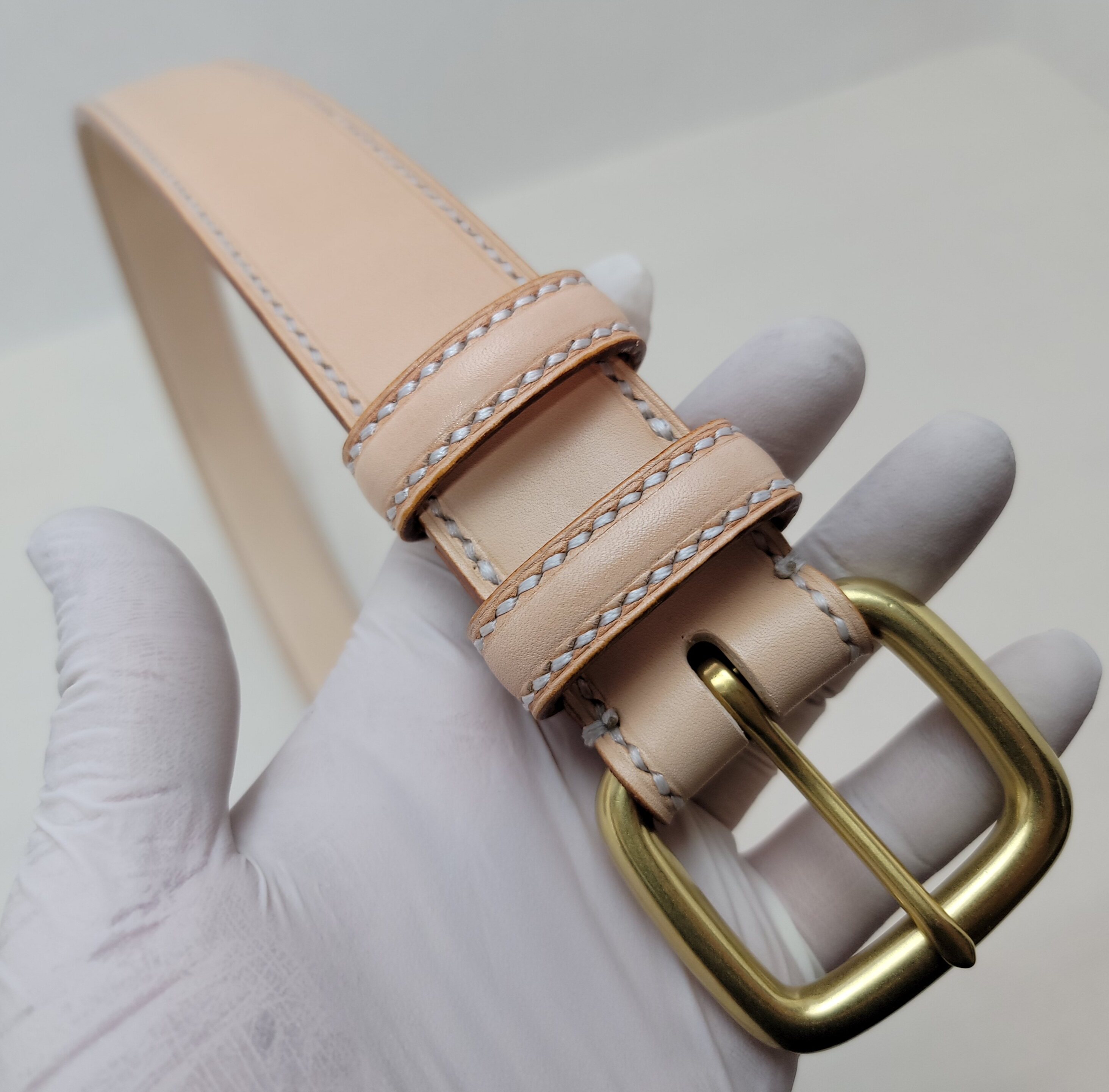 皮带腰带男士纯铜扣针扣3.6宽头层牛皮百搭原色植鞣皮手工缝线