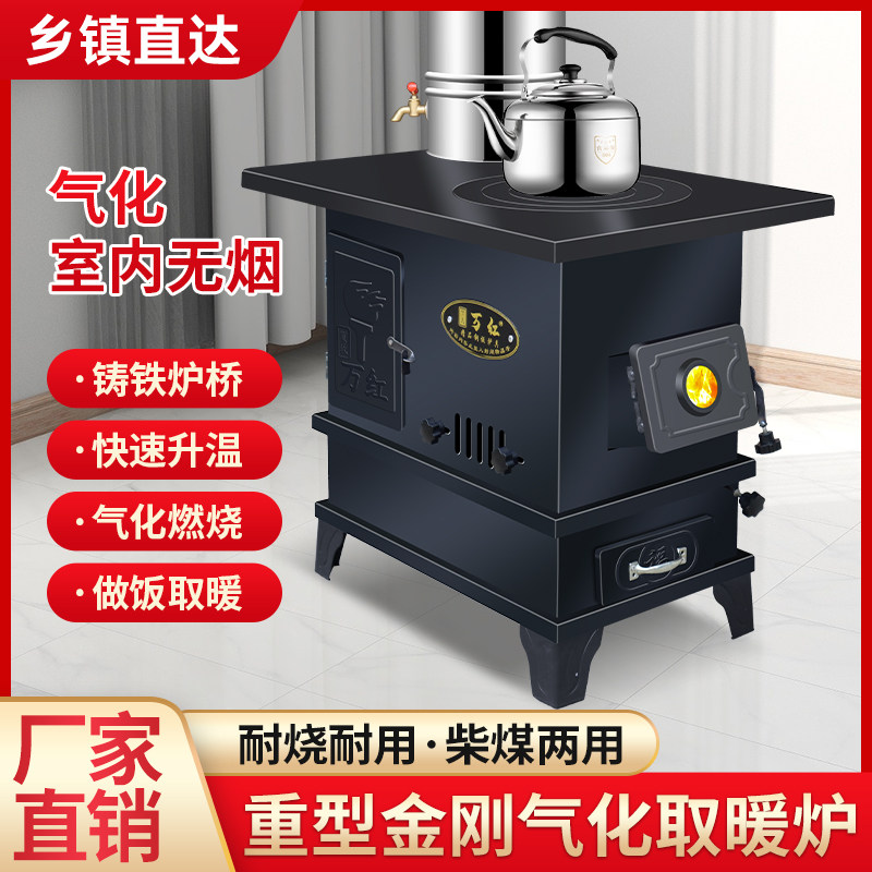 取暖炉家用室内无烟燃煤炭两用农村新型柴火气化灶冬天升温厚铸铁