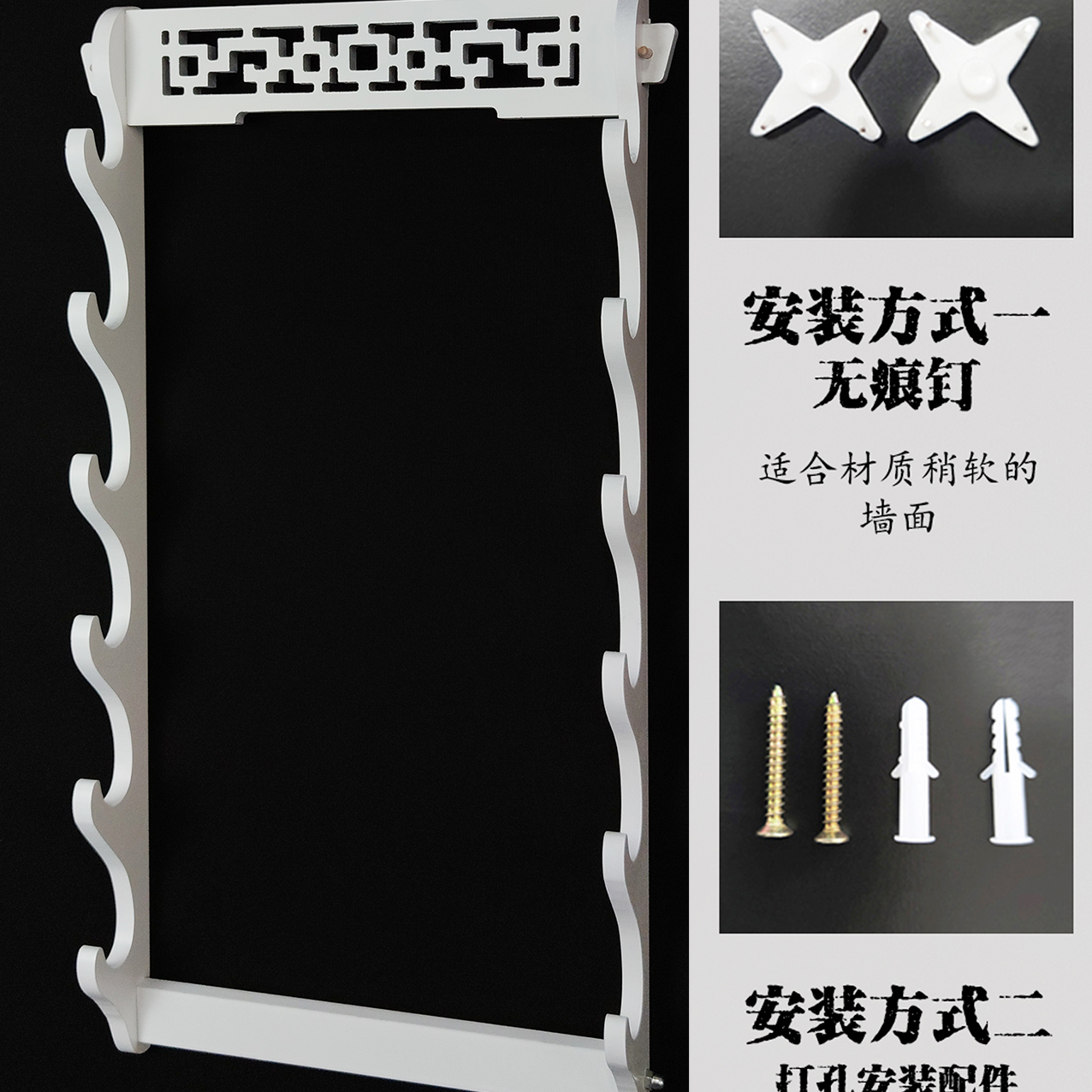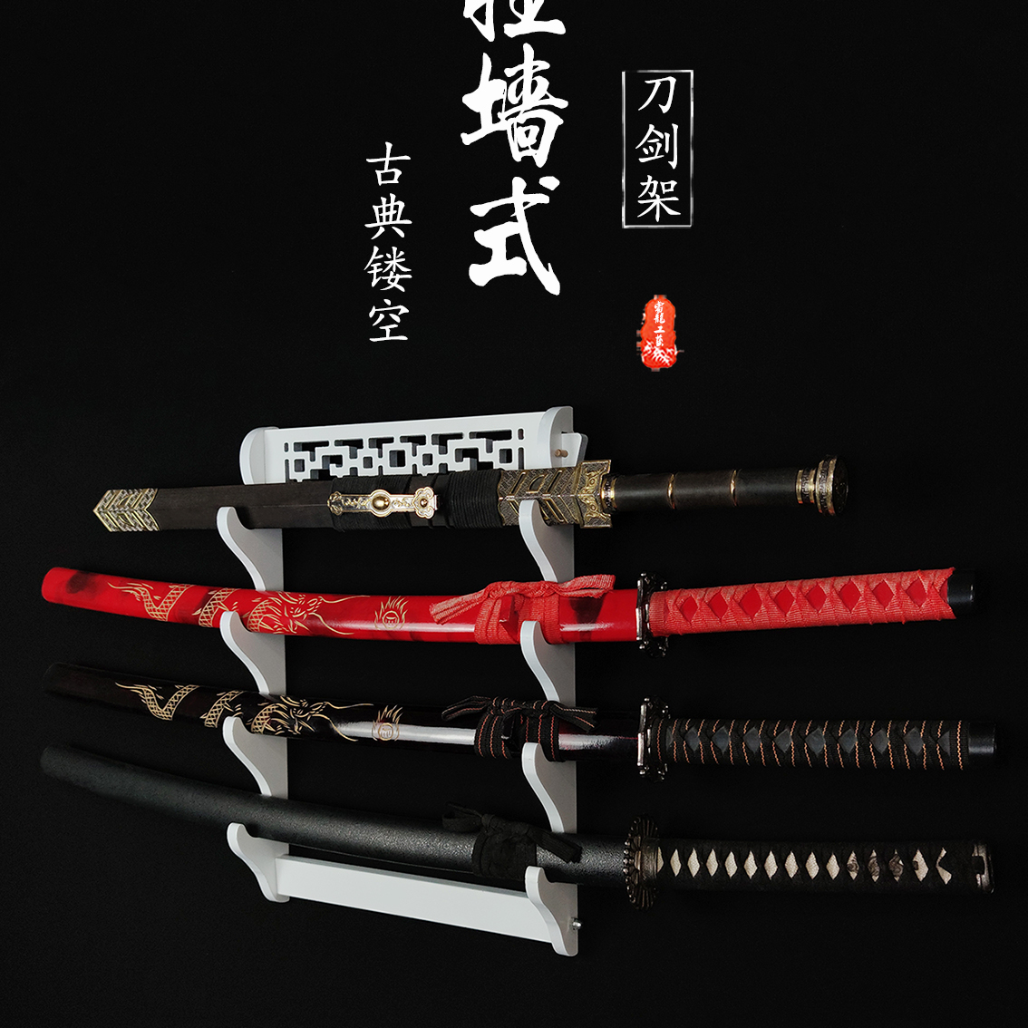 推荐理由:古典镂空刀剑架子剑托挂墙古典镂空剑架墙上多层笛子架箫架武器架