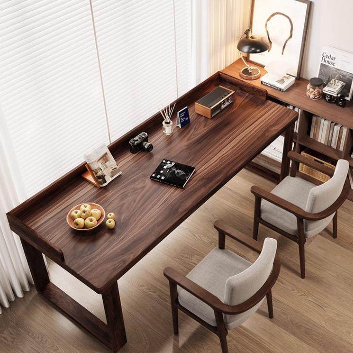 南美黑胡桃木书桌简约现代电脑桌原木双人学习桌榫卯全实木办公桌