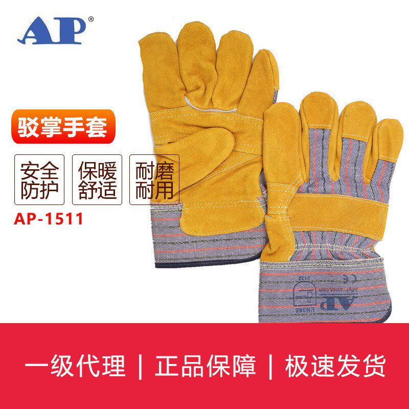 友盟AP-1511 金黄色驳掌手套 舒适吸汗劳保手套 搬运铸