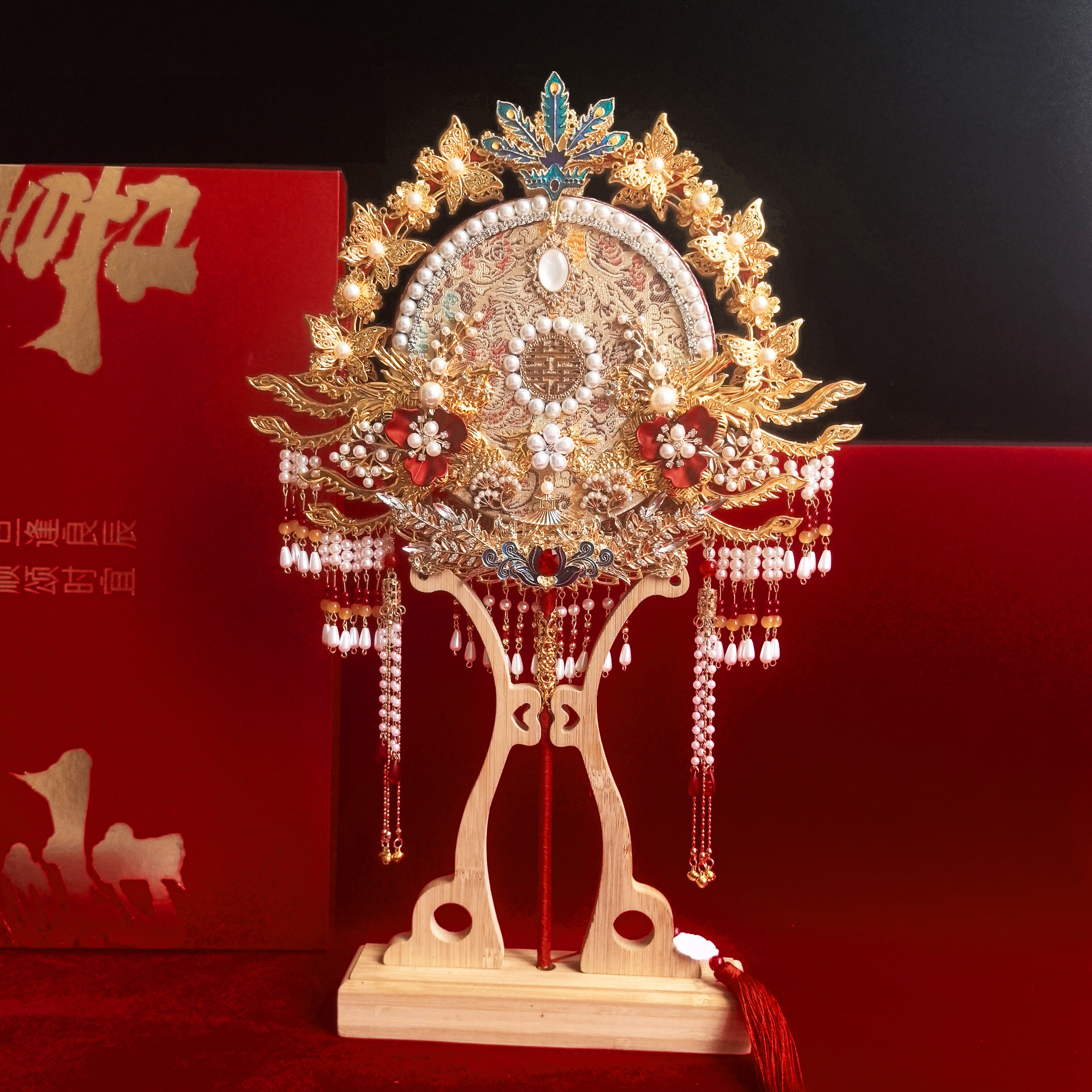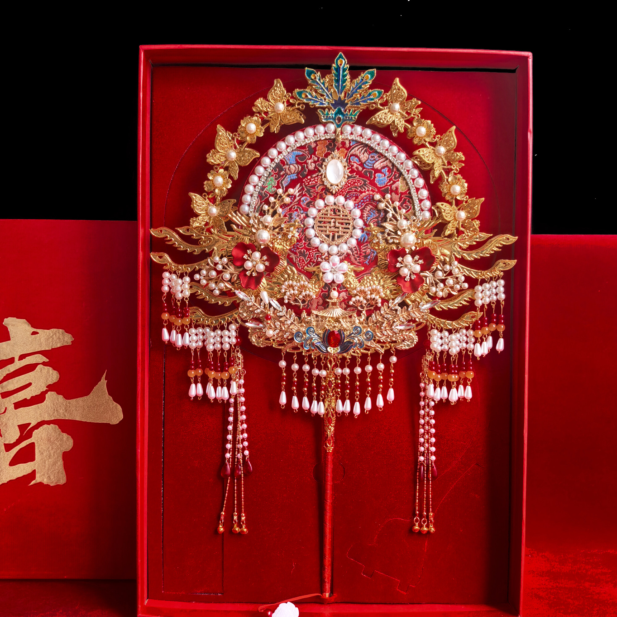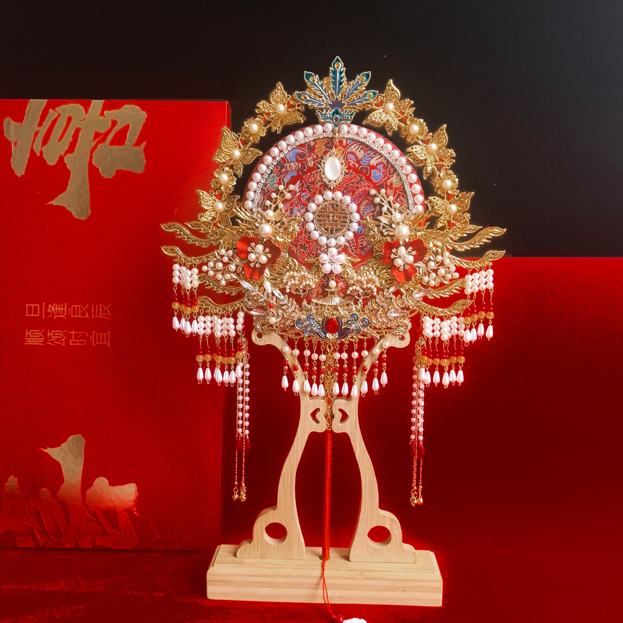 新娘结婚团扇材料包diy双面喜扇高级中式新婚礼物送新人高档实用