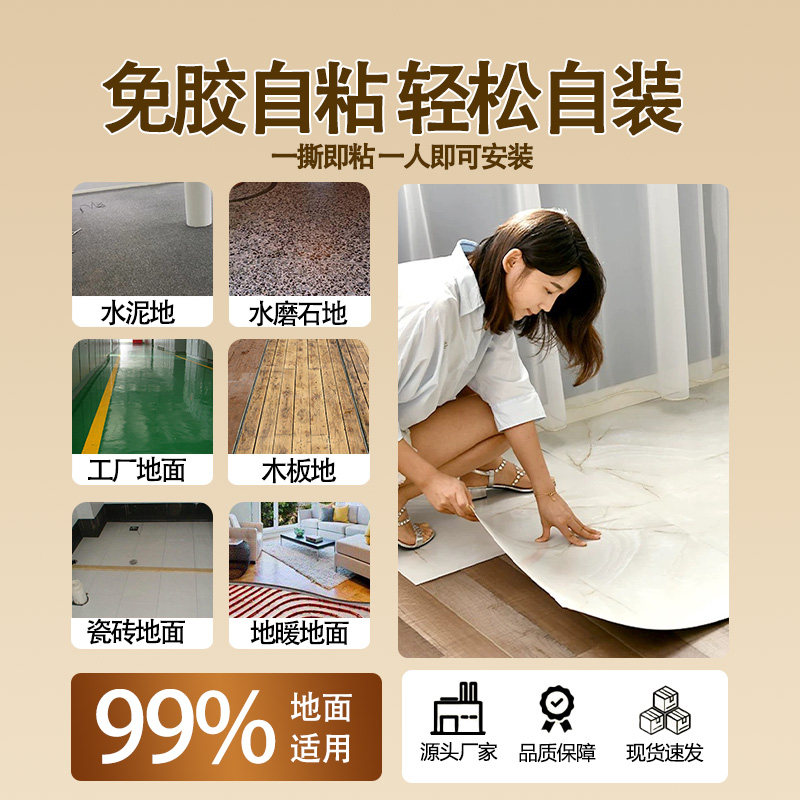 PVC地板贴自粘家用自己铺加厚耐磨木地板革防水地面翻新改造地砖