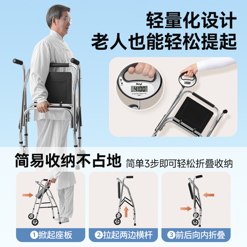 可孚老人手推车代步助行器可坐辅助行走助力器康复走路防摔倒神器
