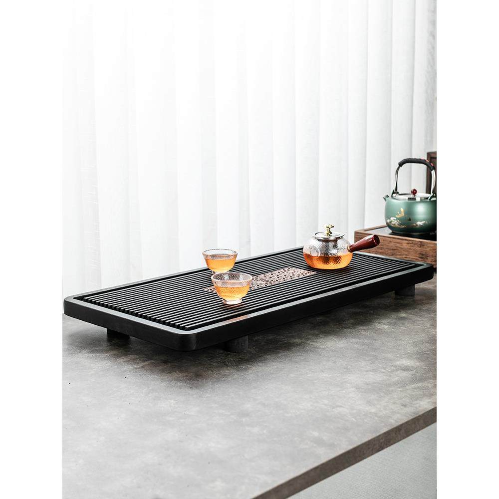 S588整块天然乌金石电木茶盘家用简约中式排水茶盘办公室大气大号
