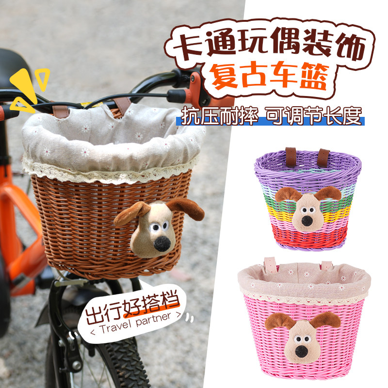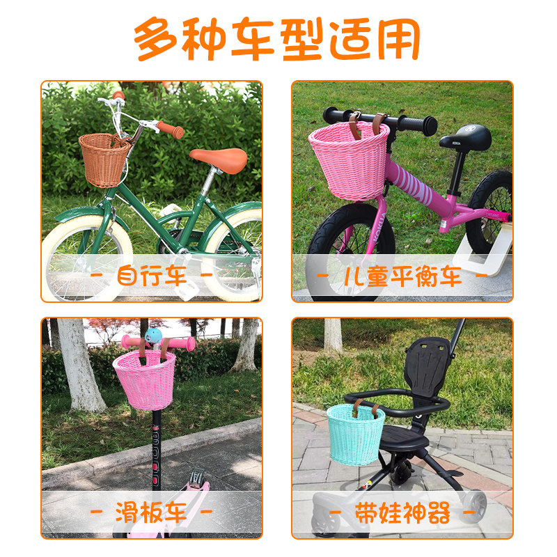 儿童自行车车筐复古编织车筐童车车篮子前车筐前车篓小孩遛娃神器