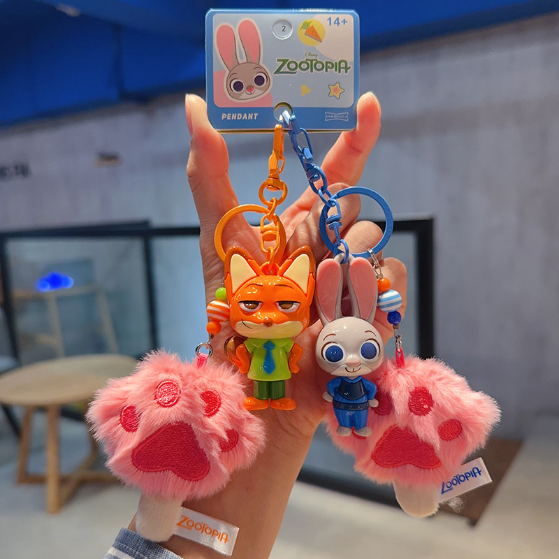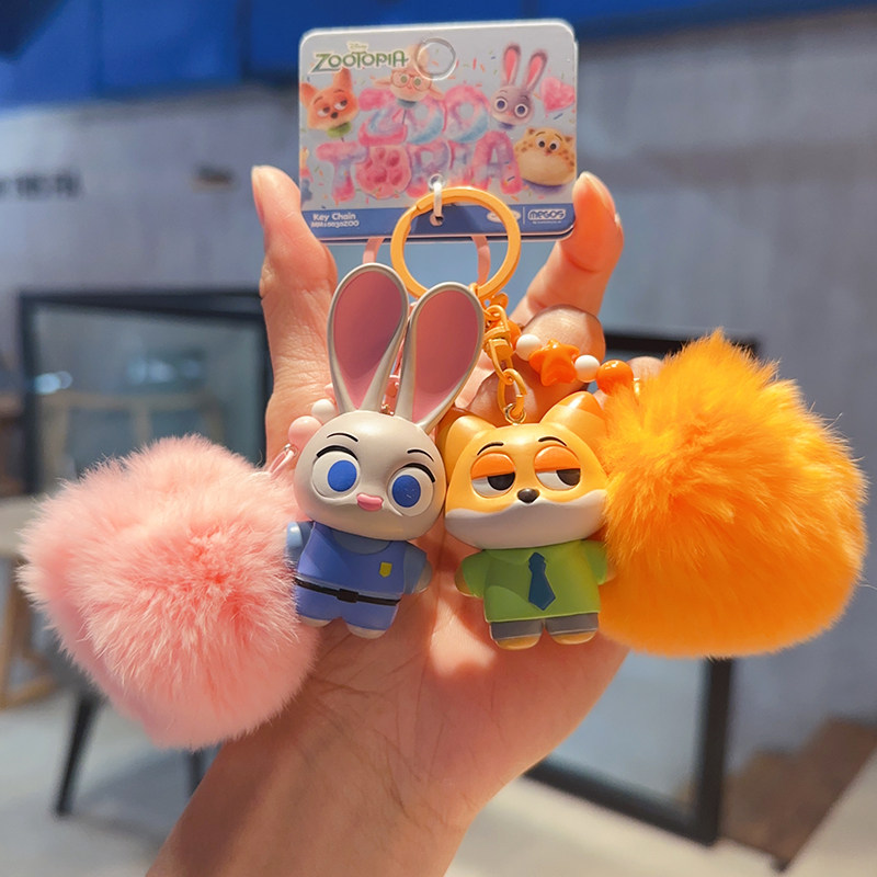 推荐理由:爆款新品卡通动漫正版疯狂动物城毛球毛绒兔朱迪狸尼克钥匙扣挂件