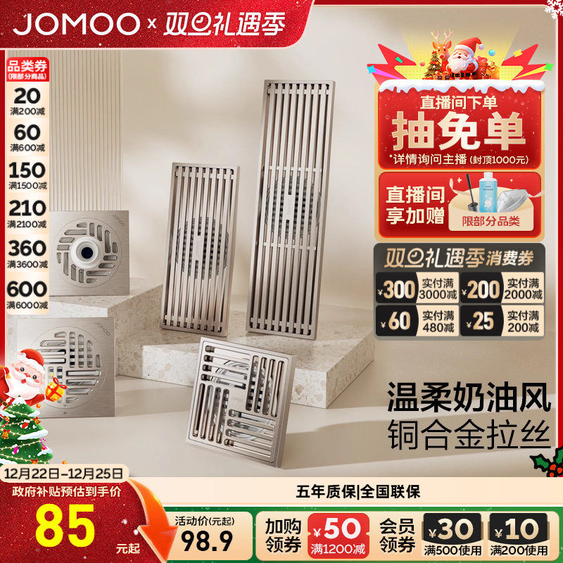 推荐理由:九牧卫浴奶油风铜合金防臭地漏下水道防虫防堵盖板长条地漏大流量