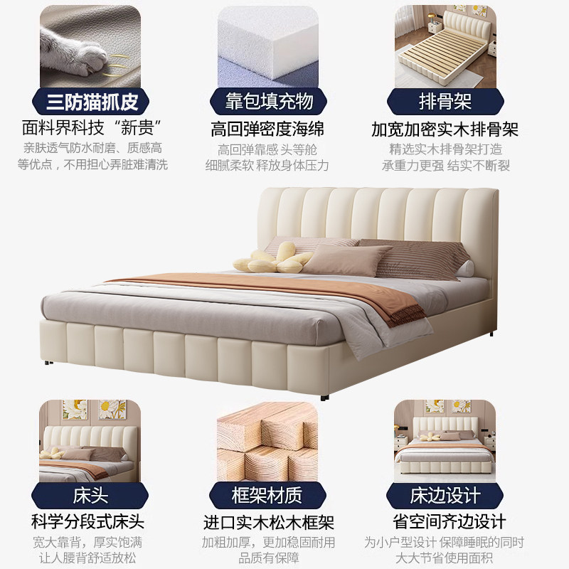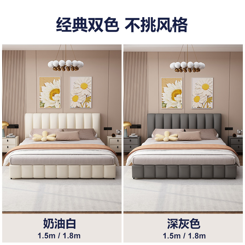 推荐理由:法式软包双人床简约现代轻奢皮艺床主卧高端大气1.5家用1.8米婚床