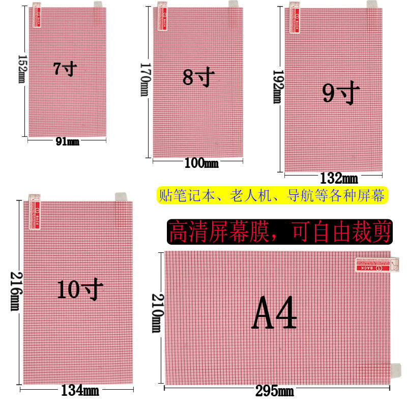 可裁剪高清贴膜A4大张通用9寸格子膜电脑平板手机汽车导航屏幕电动车12寸通用贴膜自由裁剪PET静电吸附软膜