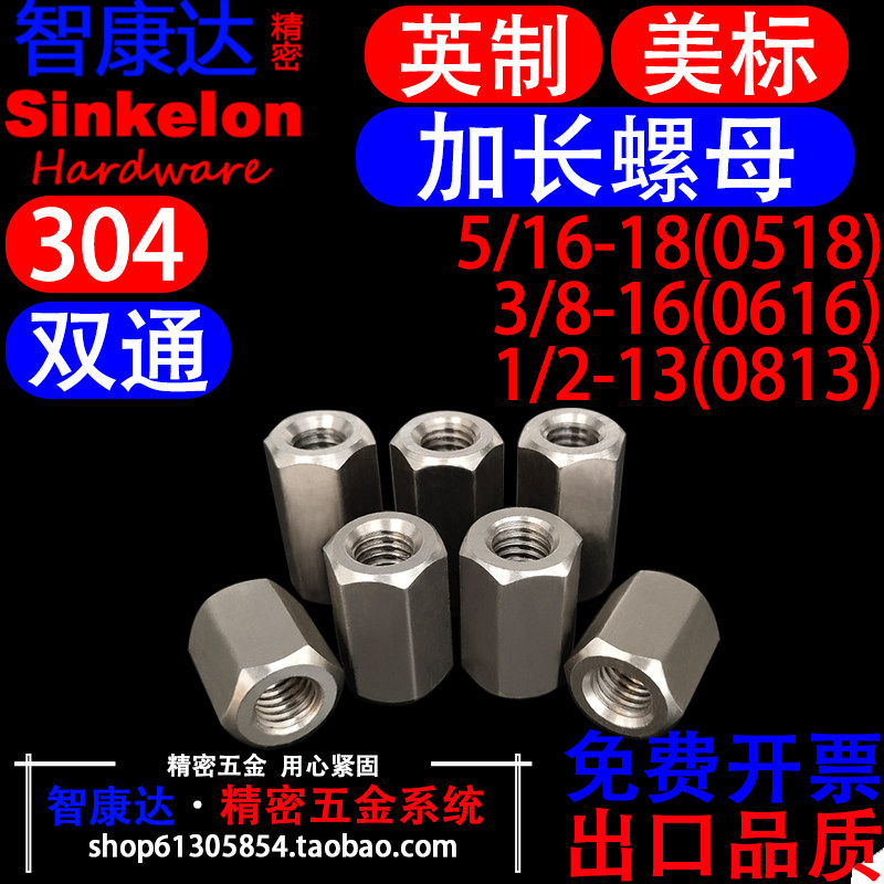 304不锈钢英制美制双通六角螺柱接线隔离柱加长螺母 5/16 3/8 1/2