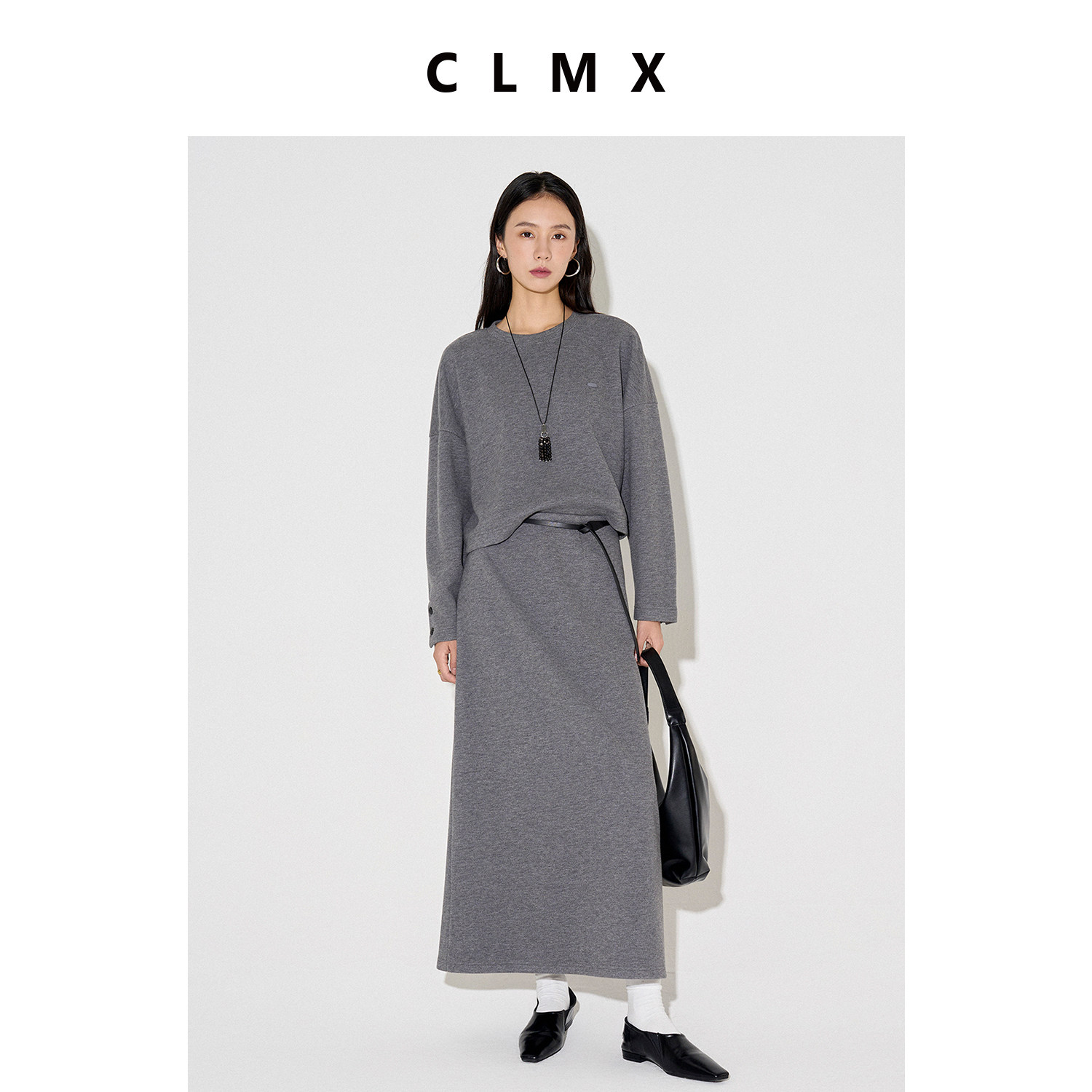 CLMX秋冬纯色通勤套装复合针织布圆领上衣/松紧腰休闲裤/半身裙女