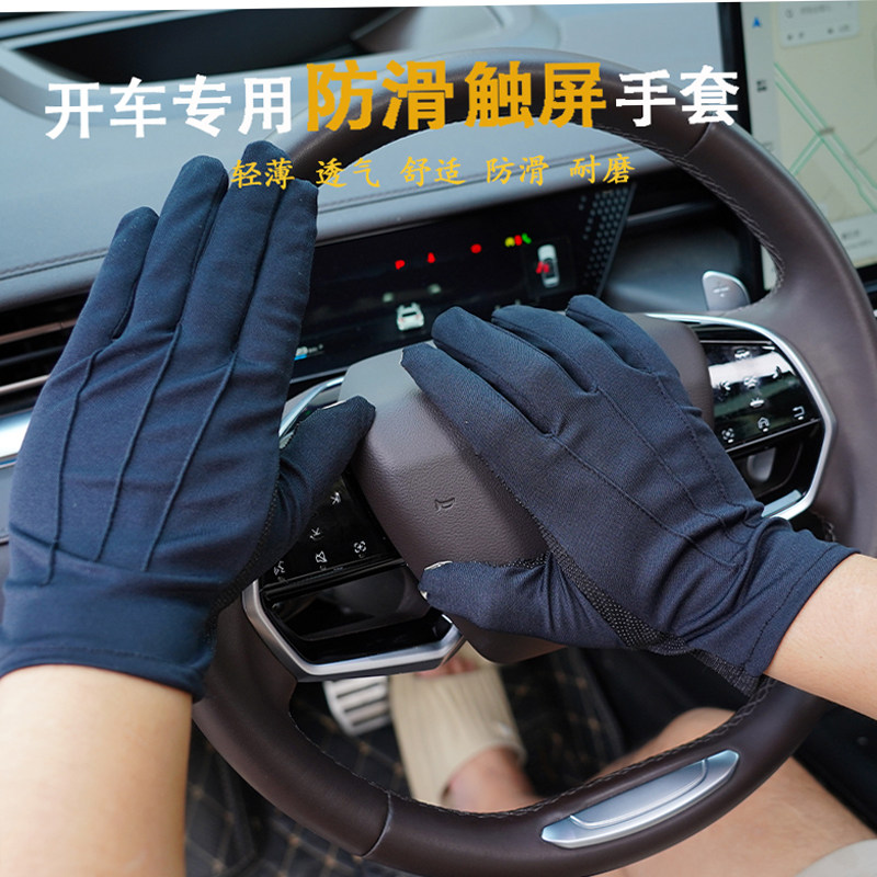 高级触屏三筋礼仪手套防滑耐磨司机开车防晒男女黑色骑行夏季薄款