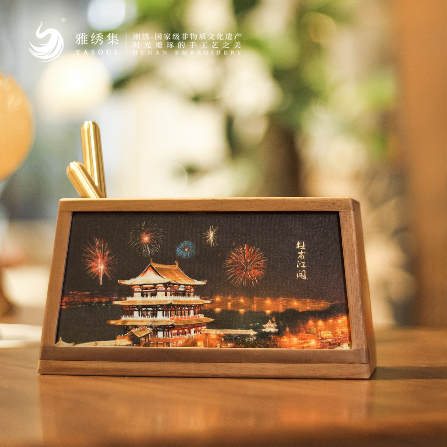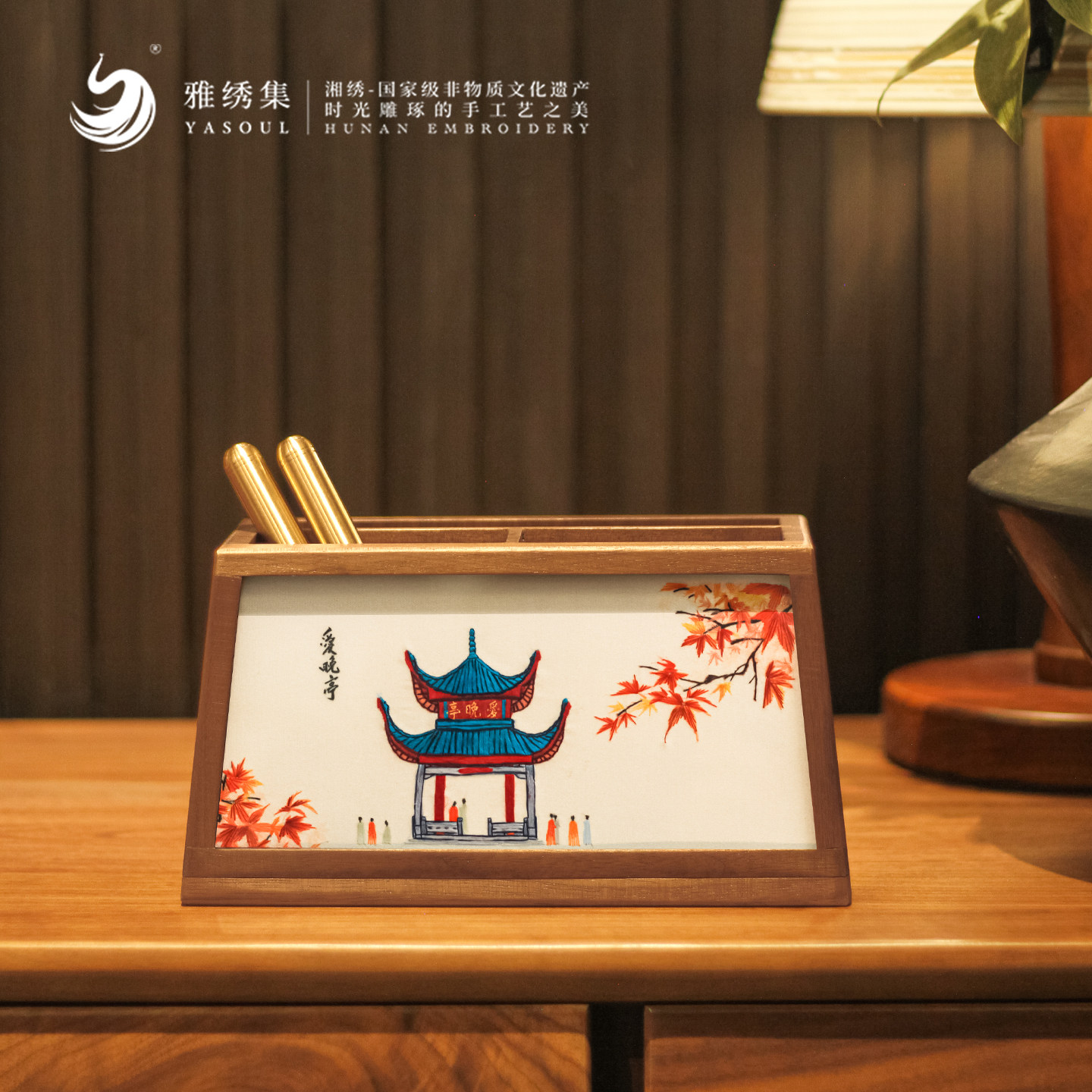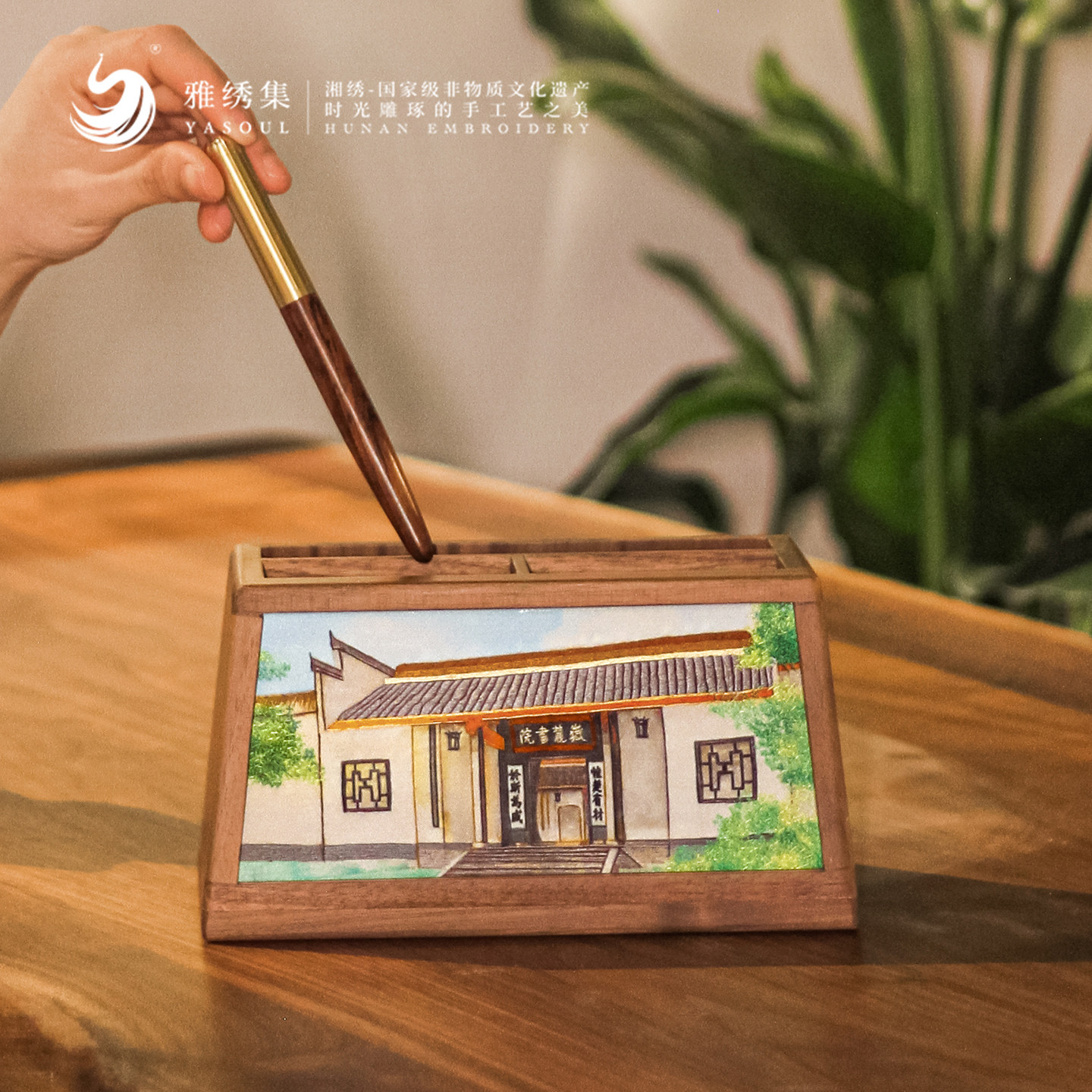 推荐理由:湘绣纯手工绣制国风文创笔筒礼盒商务送礼高档湖湘文创礼