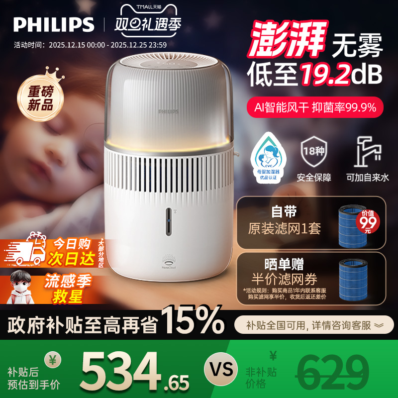 [母婴认证]飞利浦无雾加湿器家用卧室静音孕妇婴儿香薰一体HU5710