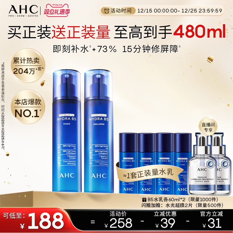 AHC官方旗舰店B5玻尿酸水乳套装保湿补水温和锁水不干护肤女正品