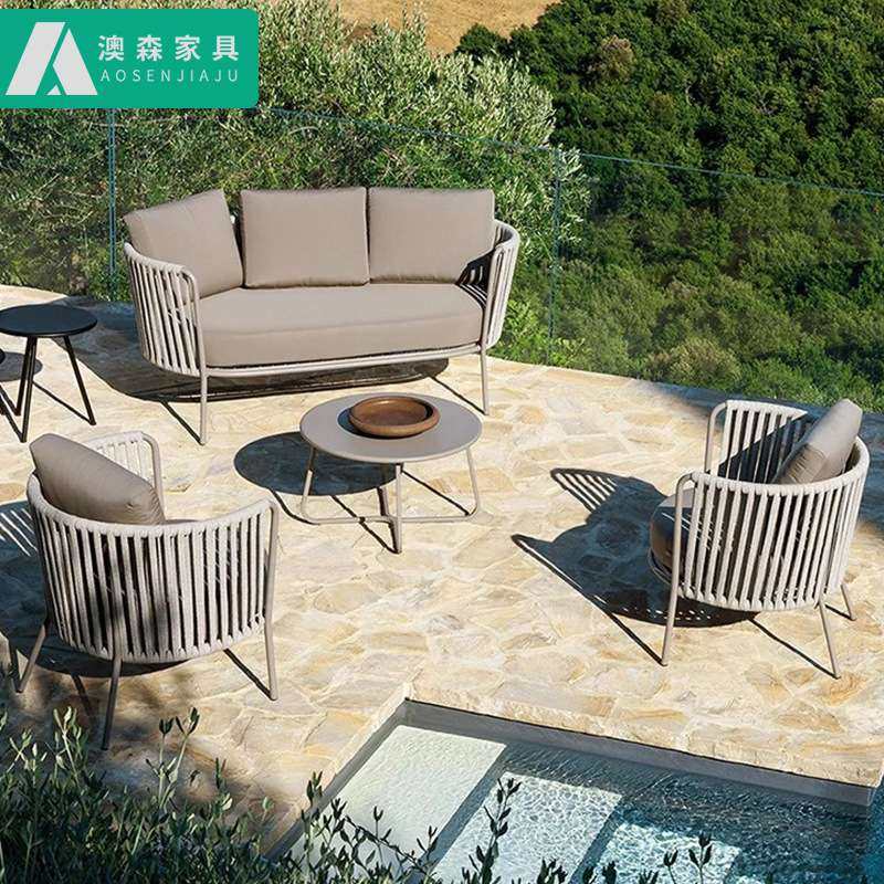 户外竹藤沙发简约现代露台别墅室外家具茶几防晒防雨休闲阳台沙发