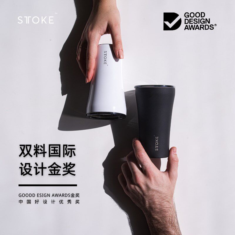 慕咖STTOKE简约大气咖啡杯随手便携杯带盖不锈钢陶瓷随行杯12OZ