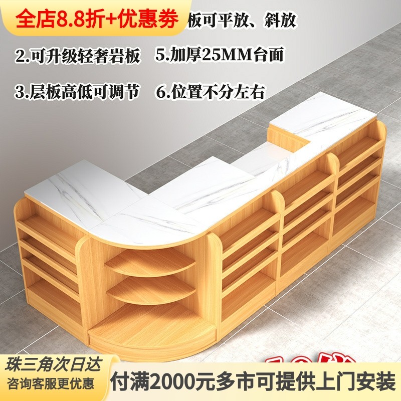 实木超市收银台零食母婴店药店柜台烟酒柜店铺小型转角便利店吧台