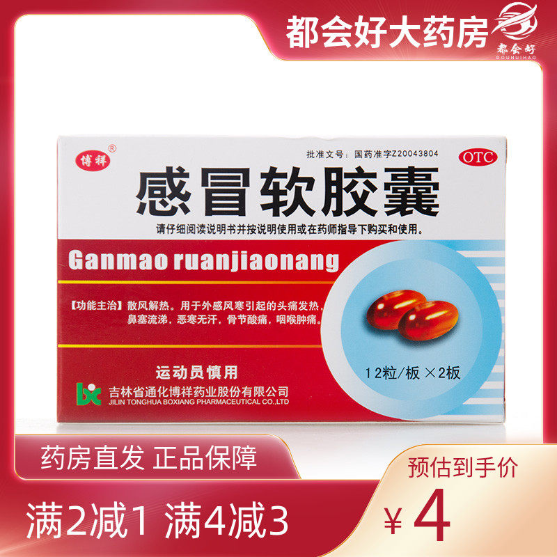 博祥 感冒软胶囊 0.425g*24粒/盒 散风解热外感风寒引起头痛发热历史价格