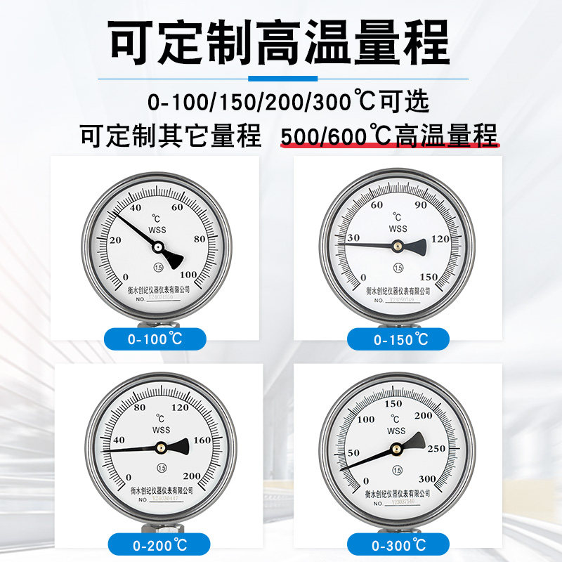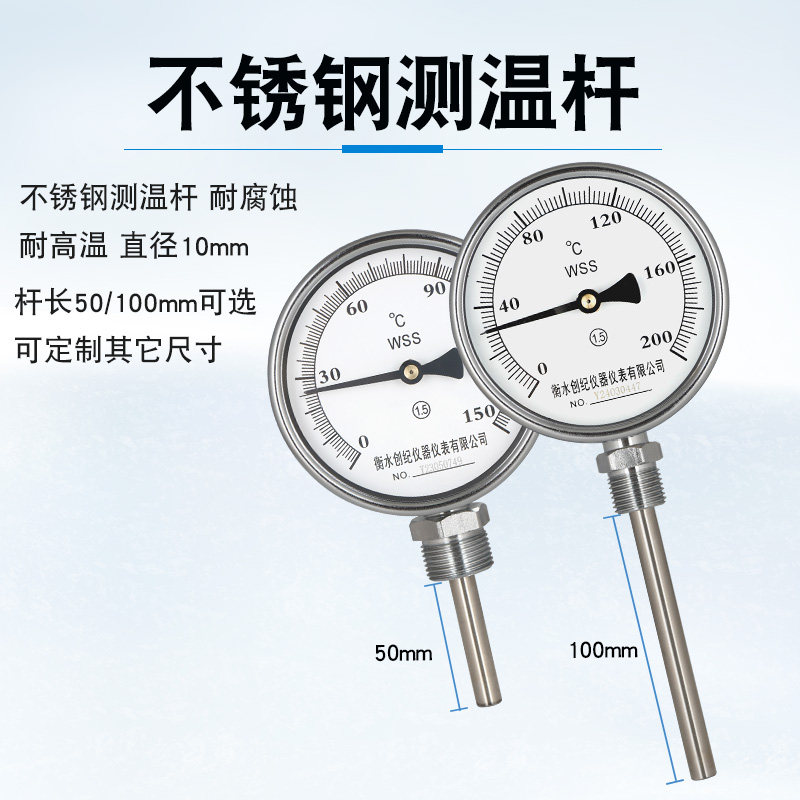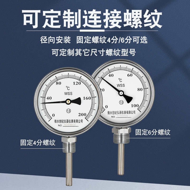 双金属温度计径向测温仪管道锅炉温度表WSS-411指针4分6分螺纹
