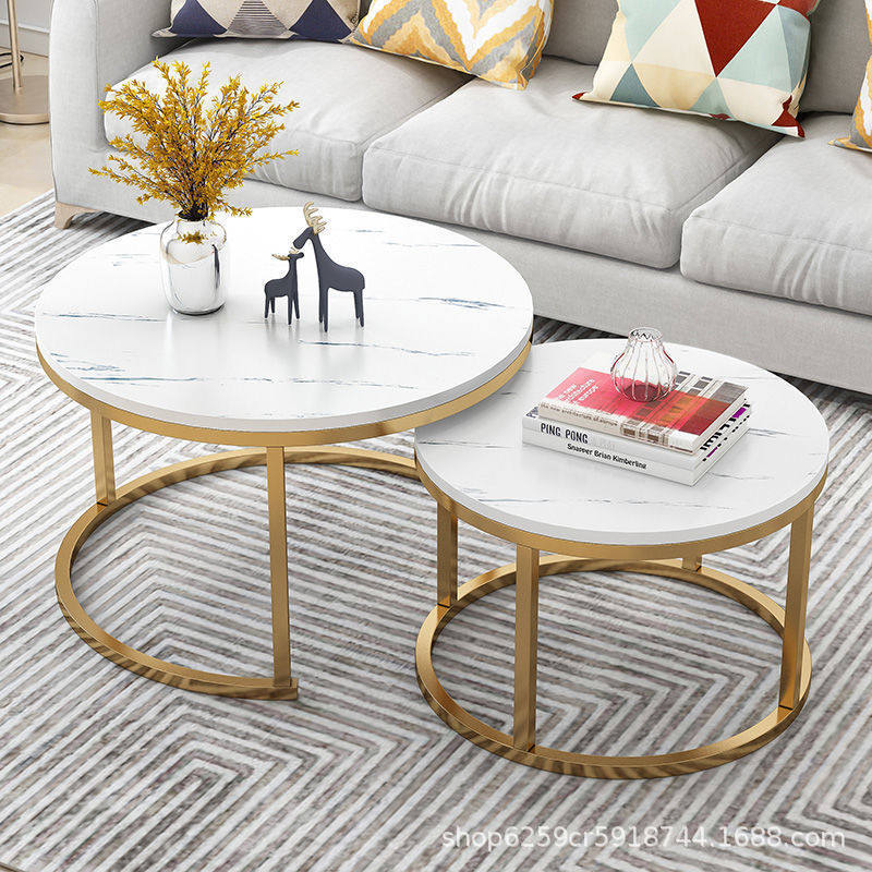 严选工厂小户型客厅茶几现代圆形仿大理石铁艺桌北欧简易边桌一体