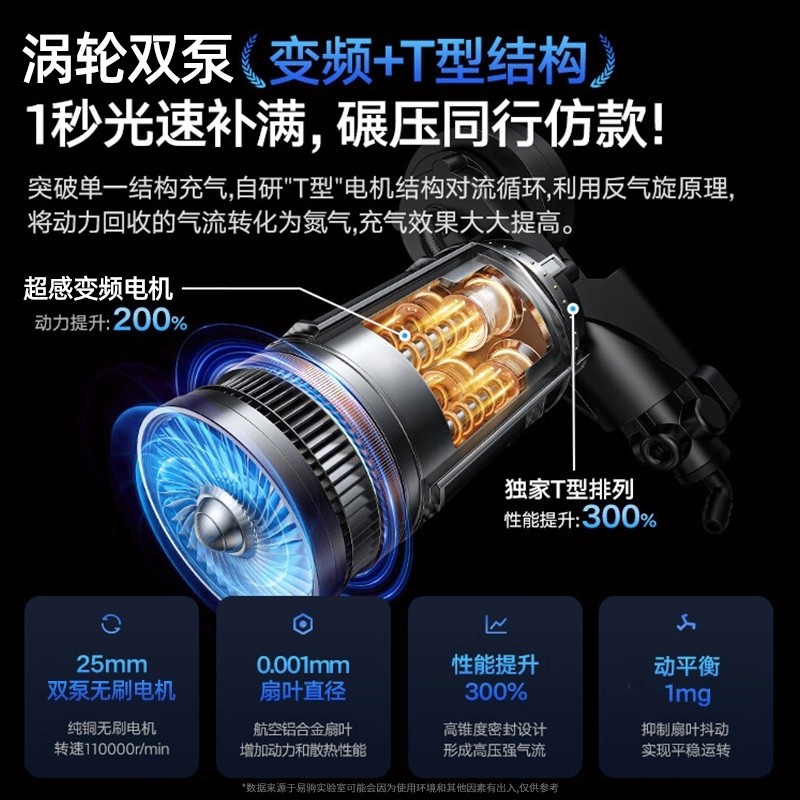 车载汽车充气泵打气泵用便携式轮胎打气筒小轿车用双缸电动加气泵
