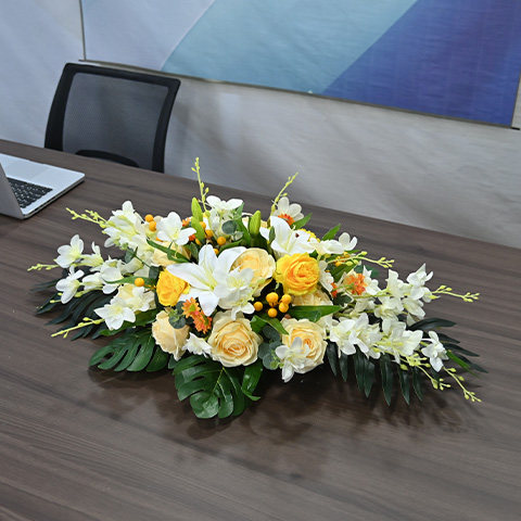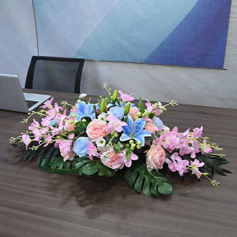 会议室摆花长桌花仿真花商务用花酒店宴会签到台迎宾桌餐桌装饰花