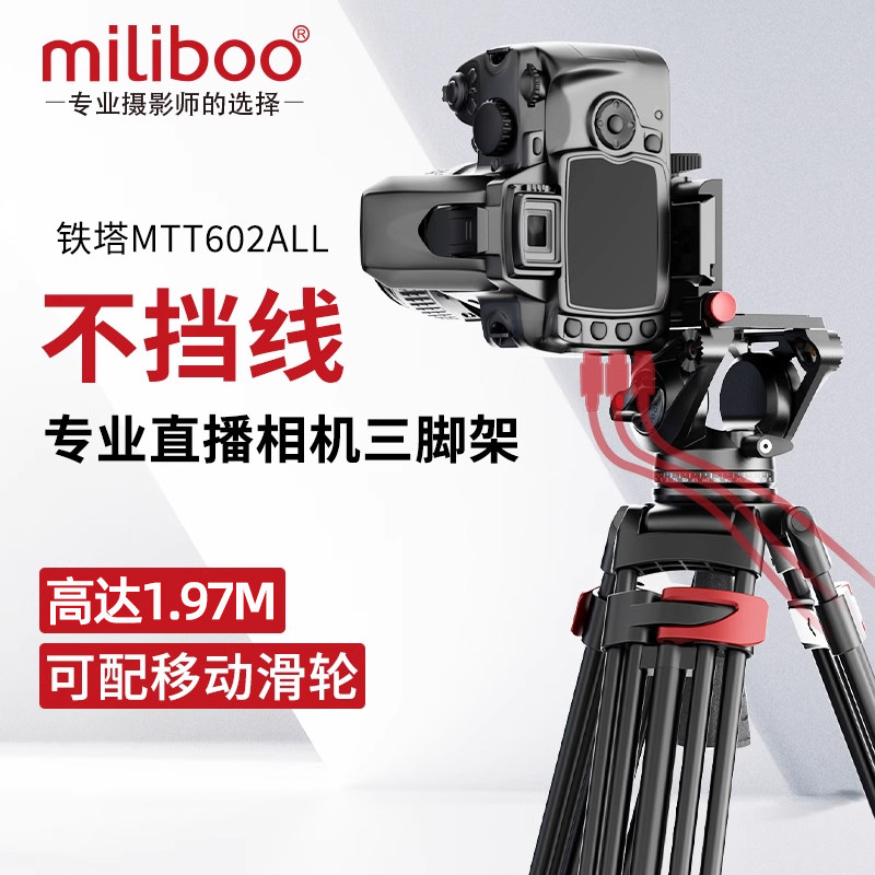 一键竖拍miliboo米泊铁塔mtt601ALL专业摄影摄像机三脚架单反相机直播滑轨俯拍支架液压阻尼视频602重型移动