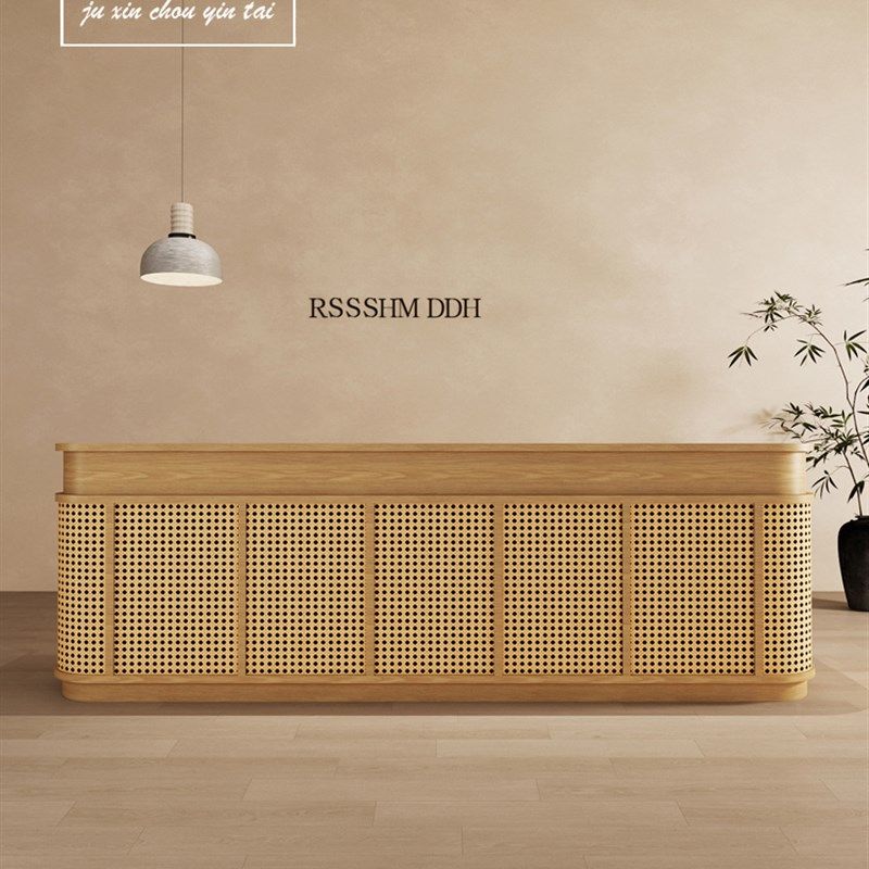 店铺小型收银台柜台民宿侘寂风饭店吧台藤编中式前台采耳店接待台