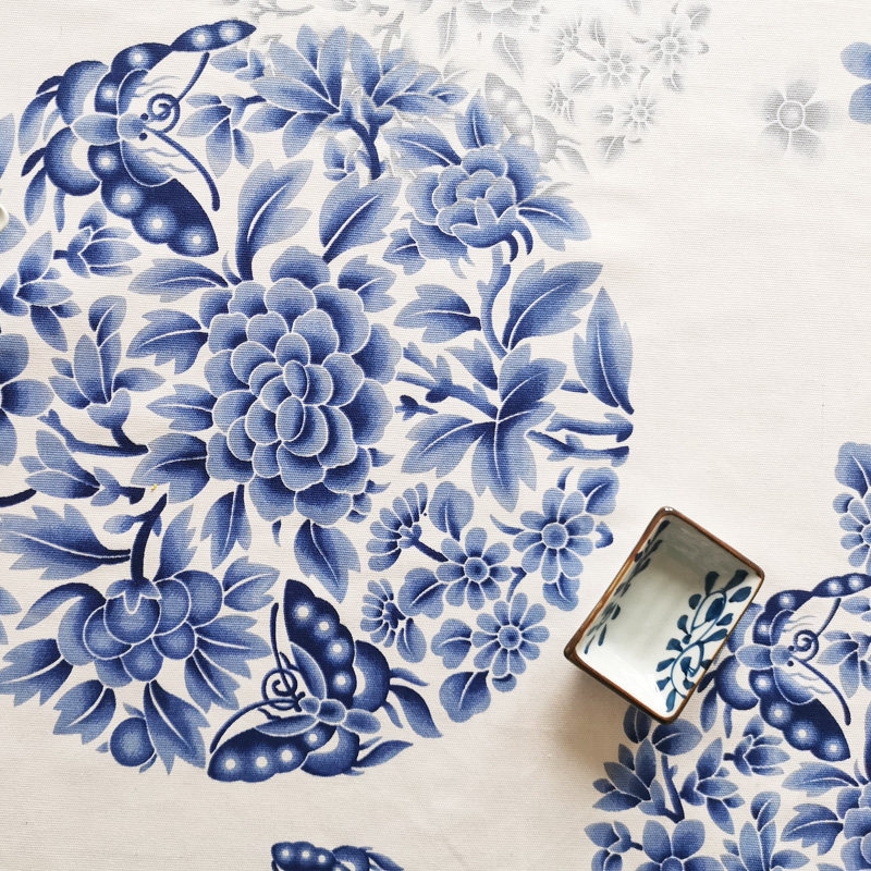 2.4米宽幅老粗布料床单沙发布窗帘桌布青花瓷棉麻帆布蓝印花面料