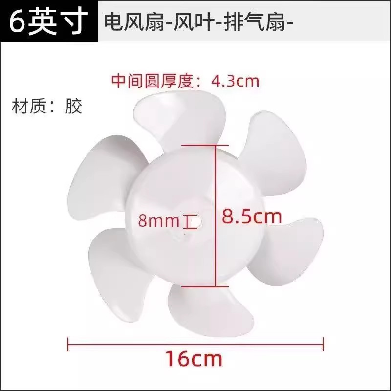 推荐理由:排气扇风叶片 油烟机换气扇扇叶 6寸/8寸/10寸/12寸 /白色六叶D孔