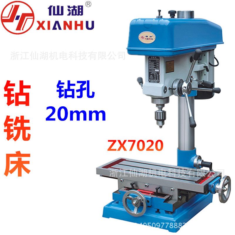 工业台钻/台式钻铣床两用钻床ZX7020 20MM 螺纹手轮/升降摇手立柱
