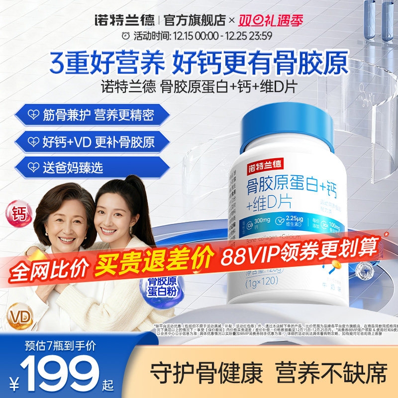 诺特兰德骨胶原蛋白钙+维d成人中老年钙咀嚼片官方正品非氨糖软骨