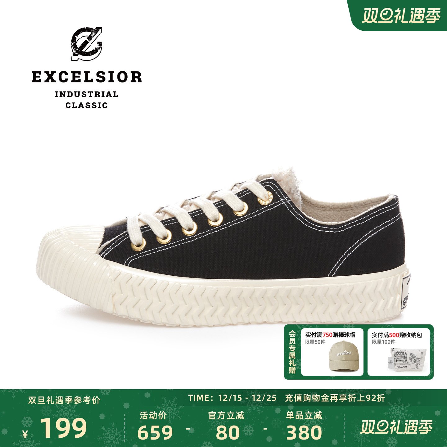 excelsior饼干鞋 冬季加绒女鞋运动休闲鞋男板鞋增高厚底帆布鞋