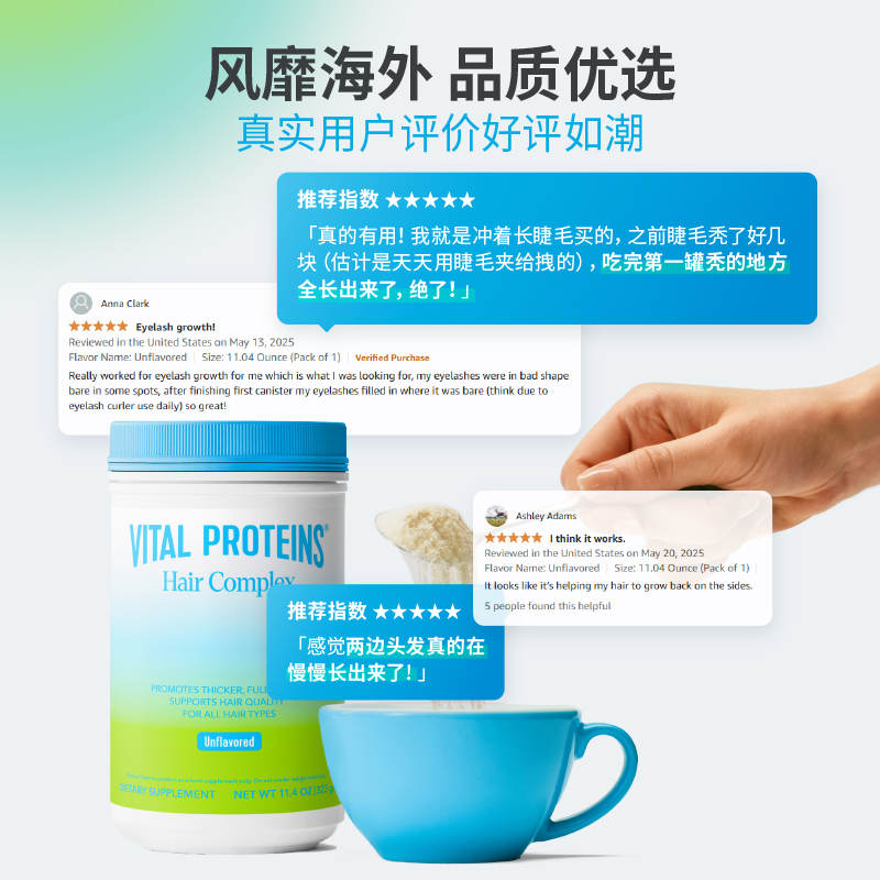 【晁然直播】Vital Proteins雀巢生发胶原蛋白肽养发粉专利生物素