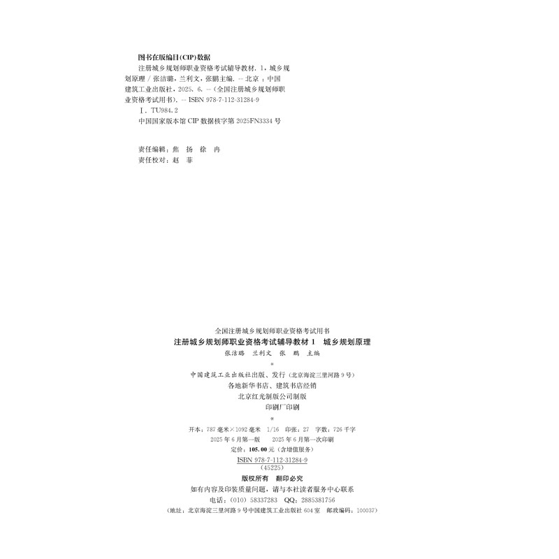 推荐理由:2025版--注册城乡规划师职业资格考试辅导教材 1 城乡规划原理张洁璐 兰利文 张鹏建筑考试其他中国建筑工业出版社