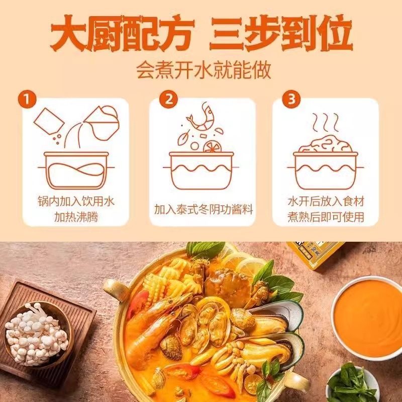 推荐理由:冬阴功汤料包泰式风味海鲜调味酱料包家用商用酸辣火锅汤料包底料