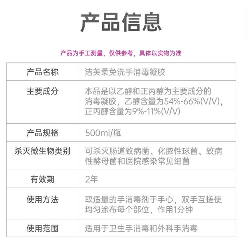 推荐理由:洁芙柔免洗手消毒凝胶含酒精洗手液医院用婴儿杀菌抑菌速干消毒液
