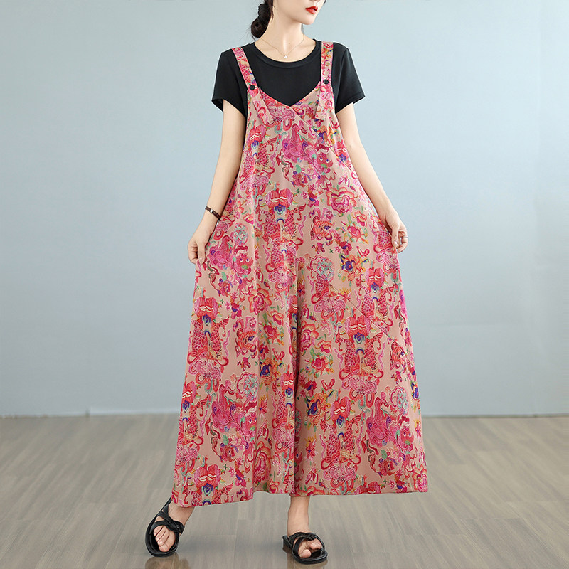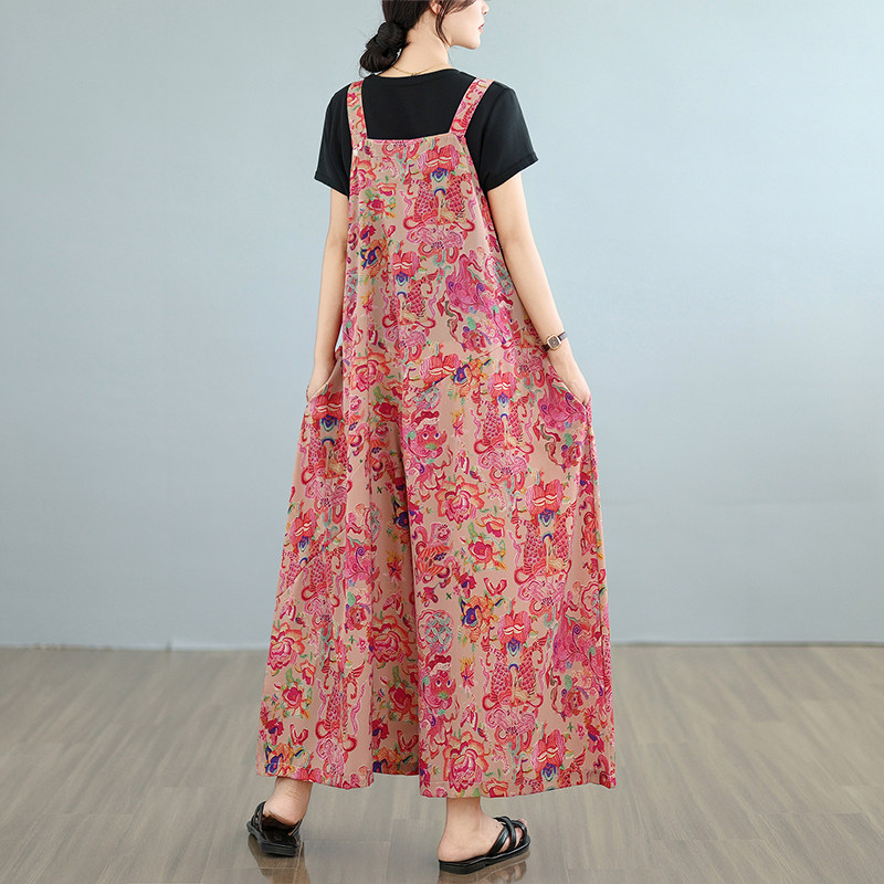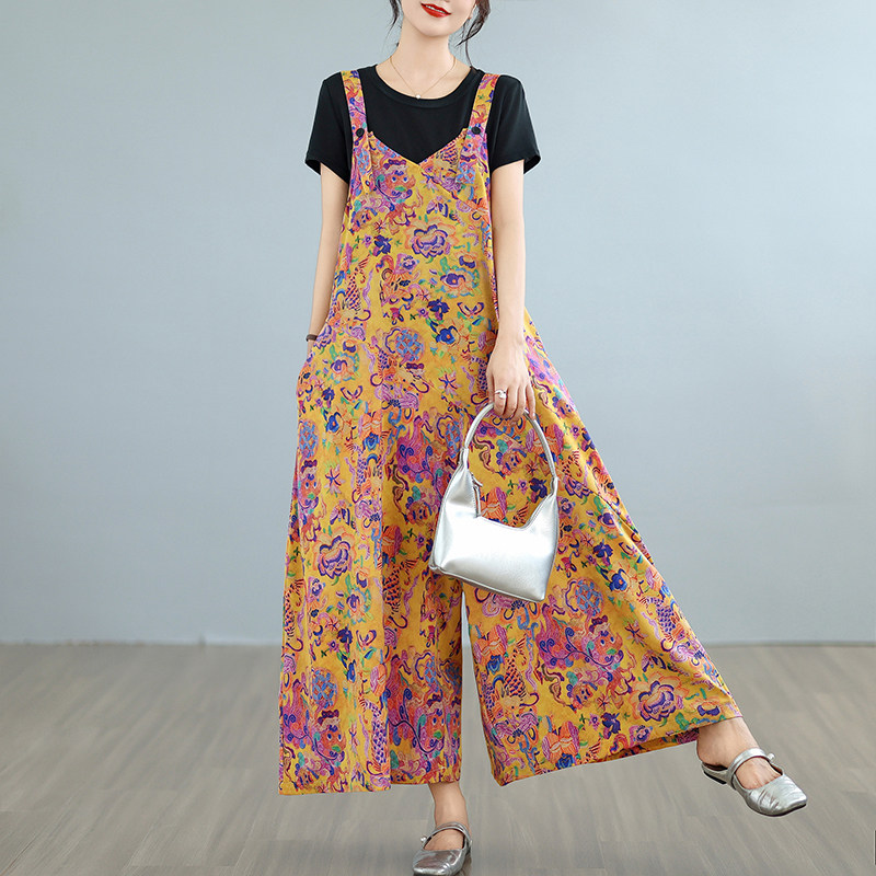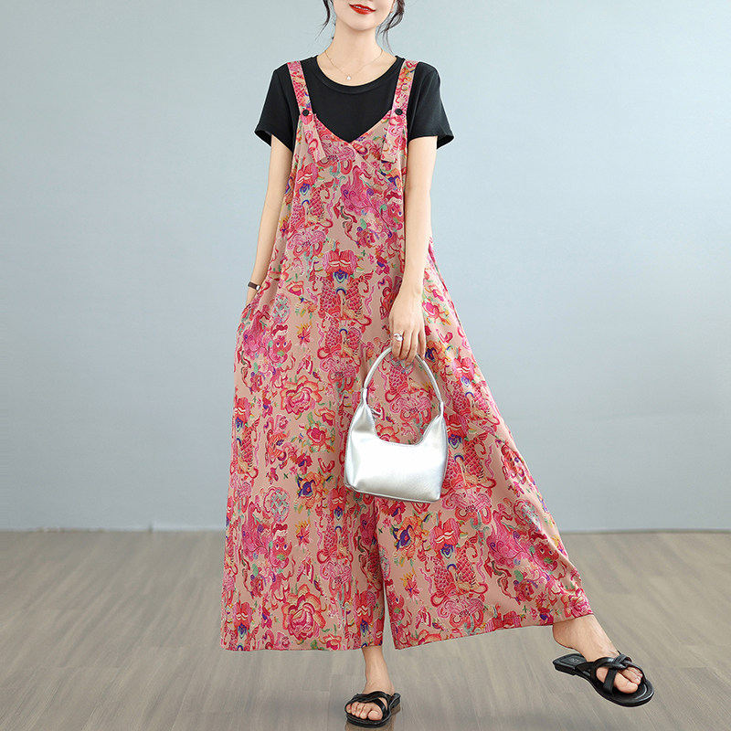 推荐理由:凉爽垂感宽松休闲V领背带裤女小个子复古显瘦气质宽松阔腿连体裤