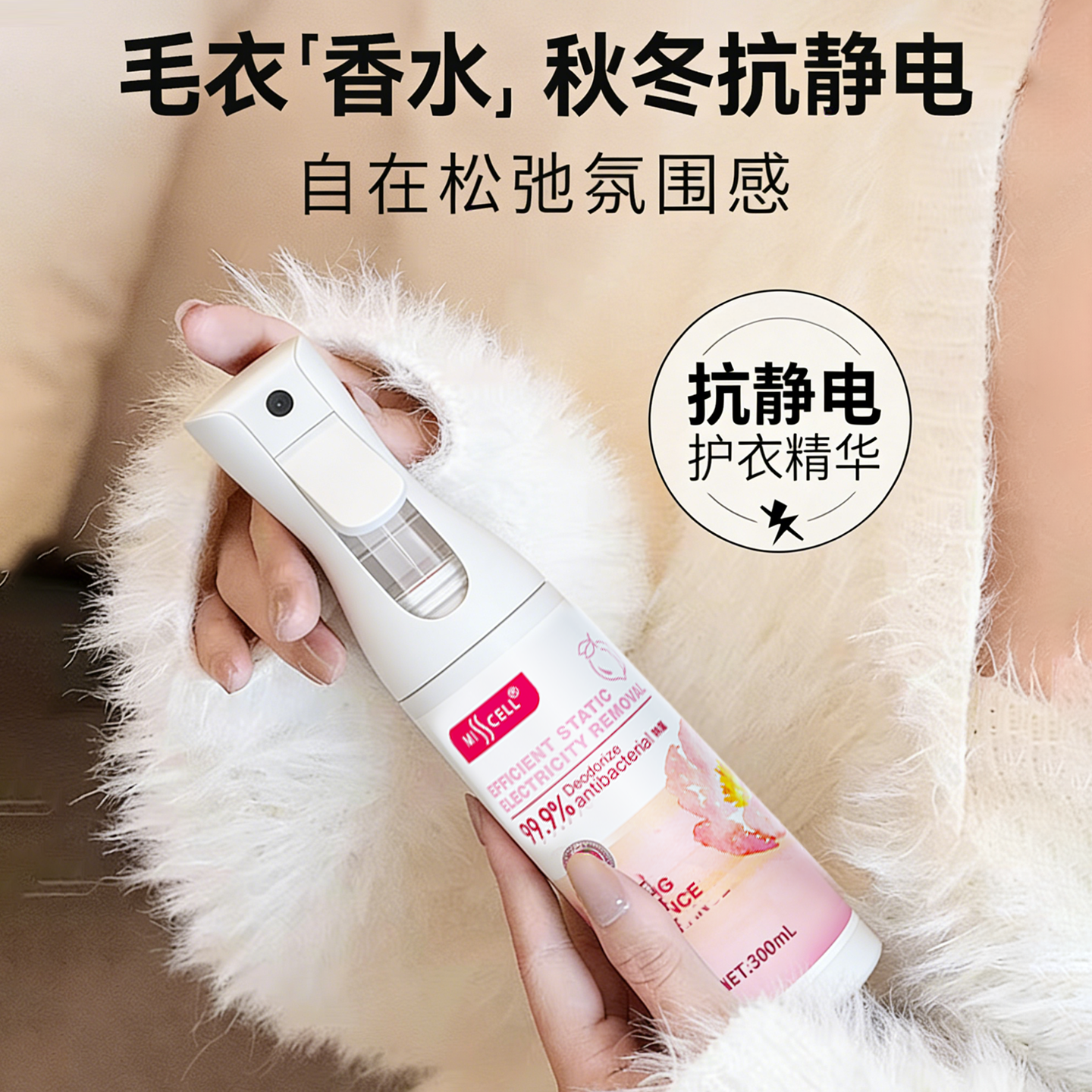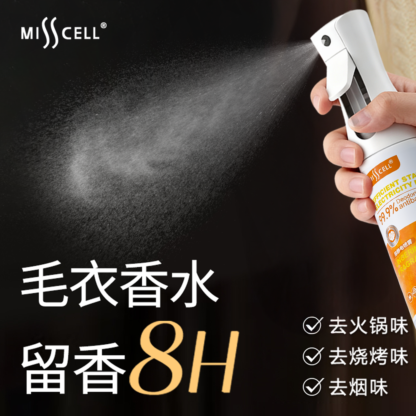 推荐理由:【抗静电】misscell衣物香氛喷雾除味持久留香羊绒衫毛衣免洗抑菌