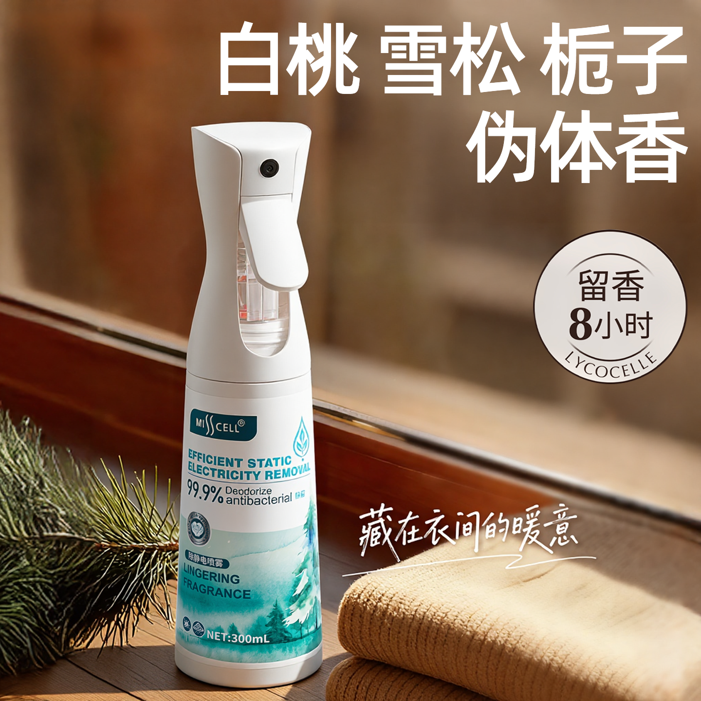 【抗静电】misscell衣物香氛喷雾除味持久留香羊绒衫毛衣免洗抑菌