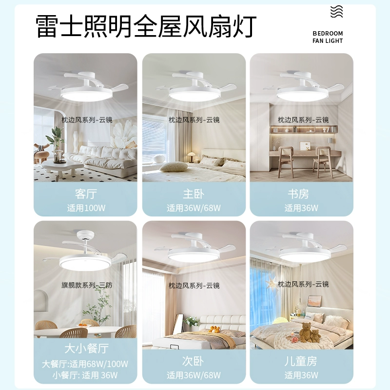 雷士照明风扇灯客厅餐厅卧室灯吊扇灯家用吊灯简约电扇枕边风灯具