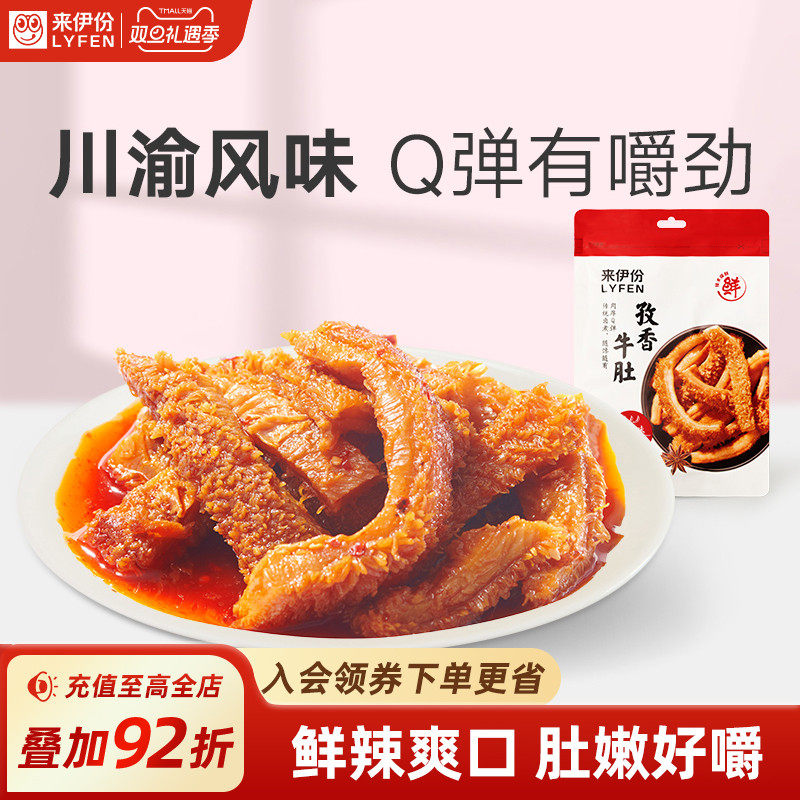 来伊份孜香牛肚105g熟食四川风味特色香辣即食零食小吃休闲食品